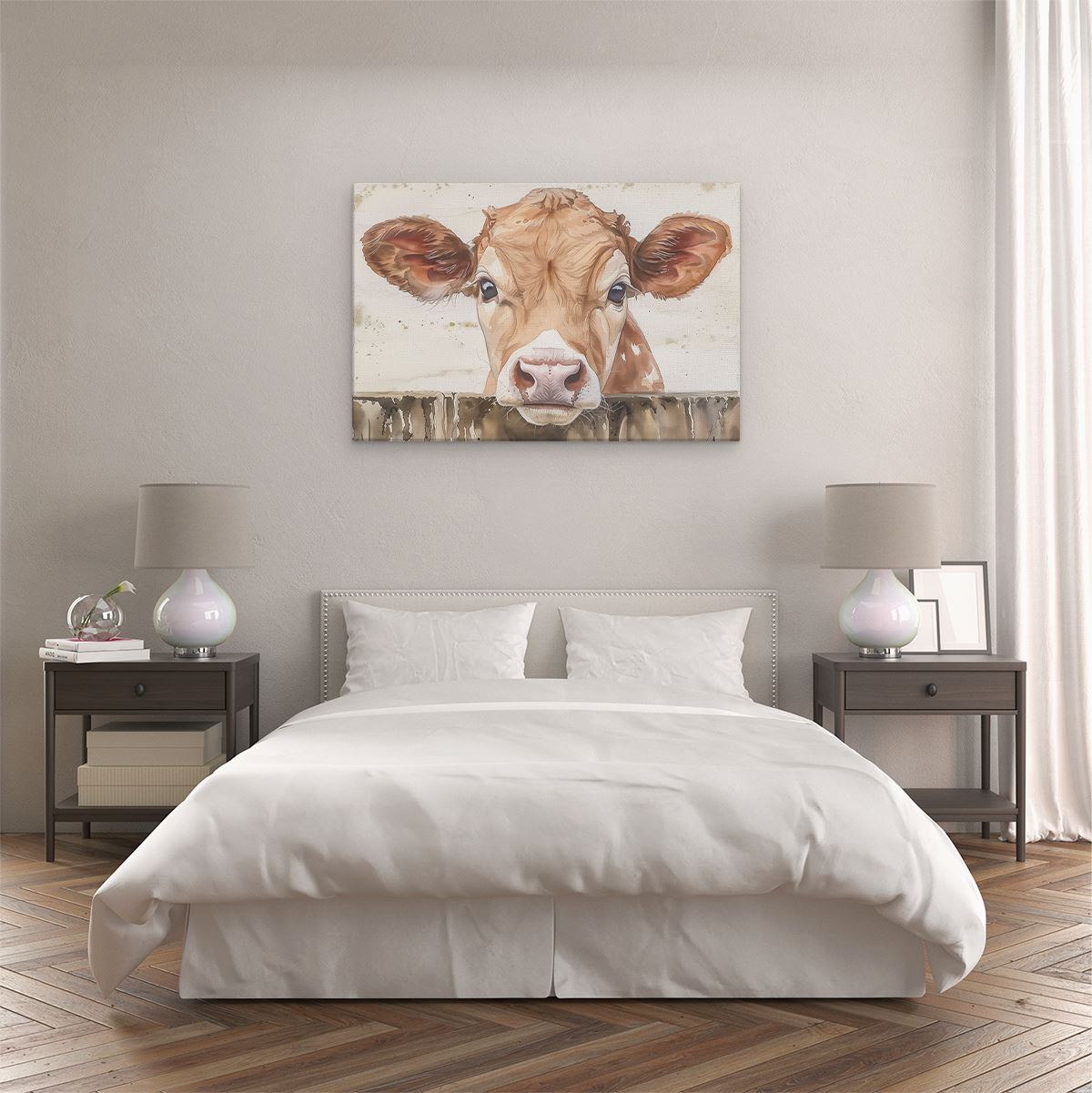 Schilderij Koe die over een Hek Kijkt