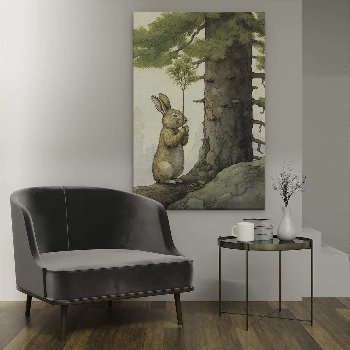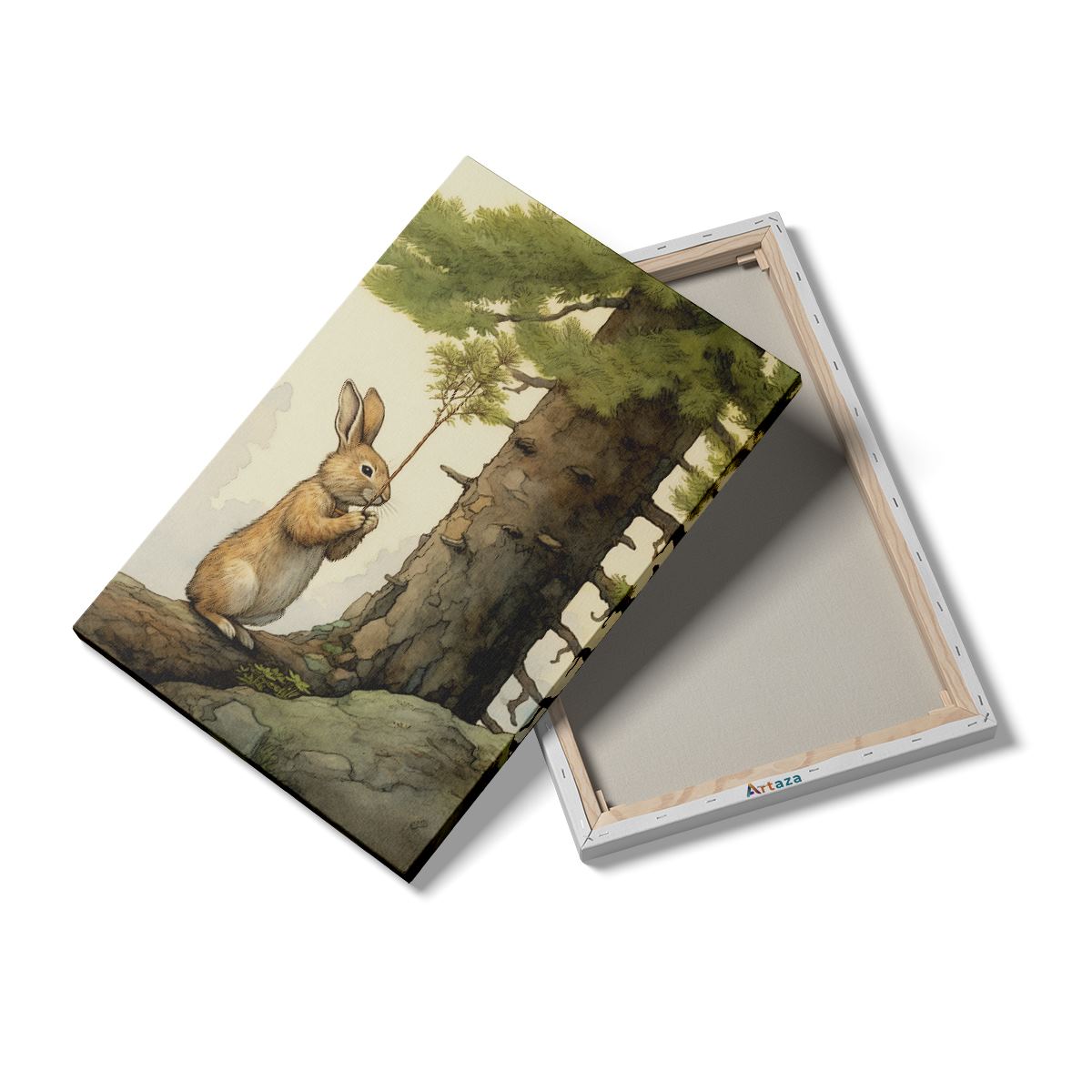 Schilderij Konijn Knaagt bij een Boom