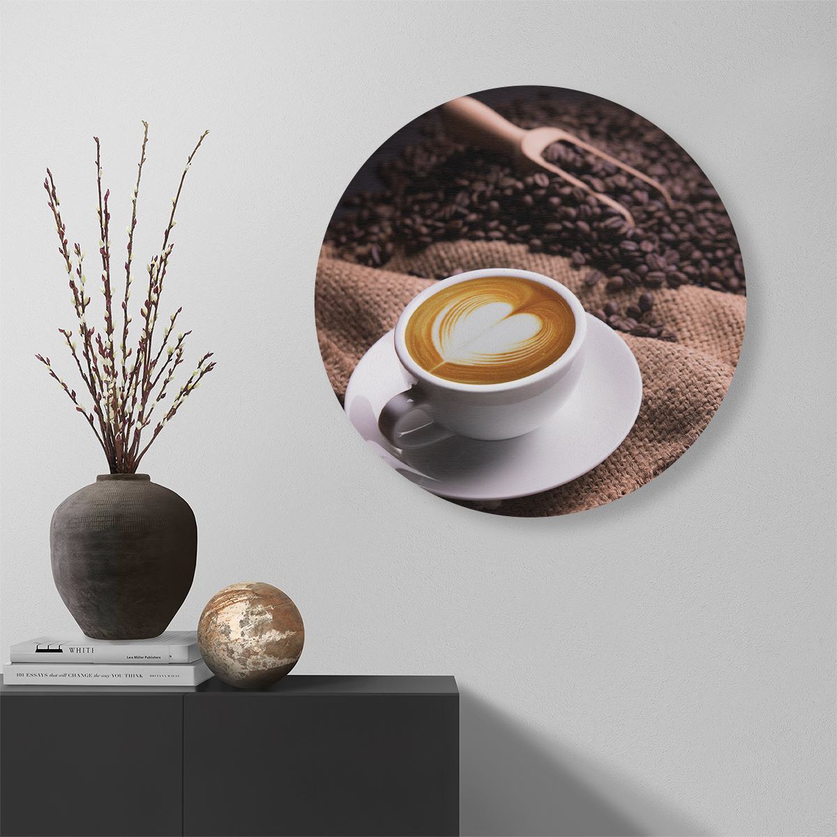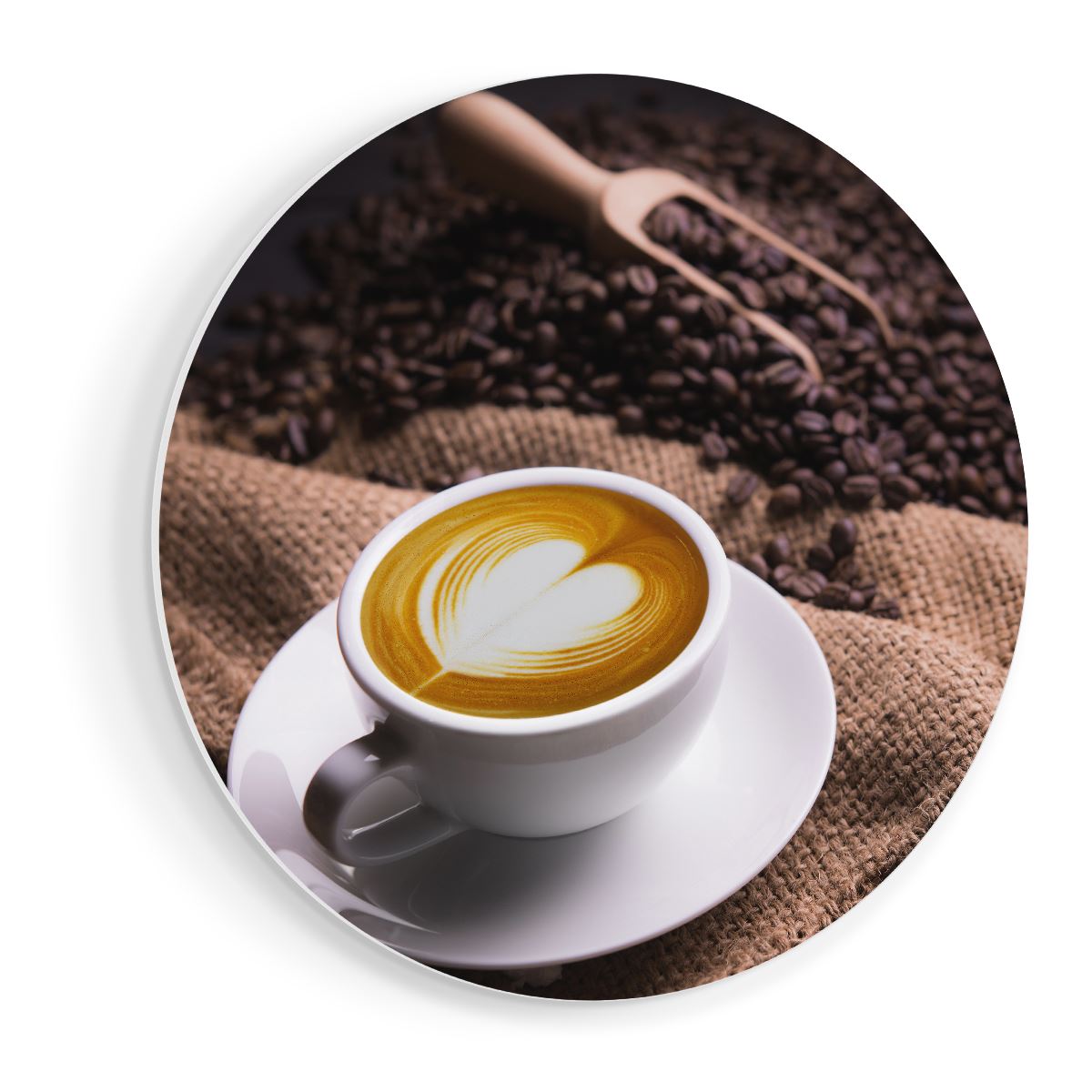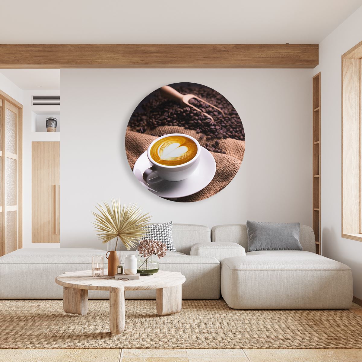 Wandcirkel Kopje Koffie In Een Hartje Met Koffiebonen