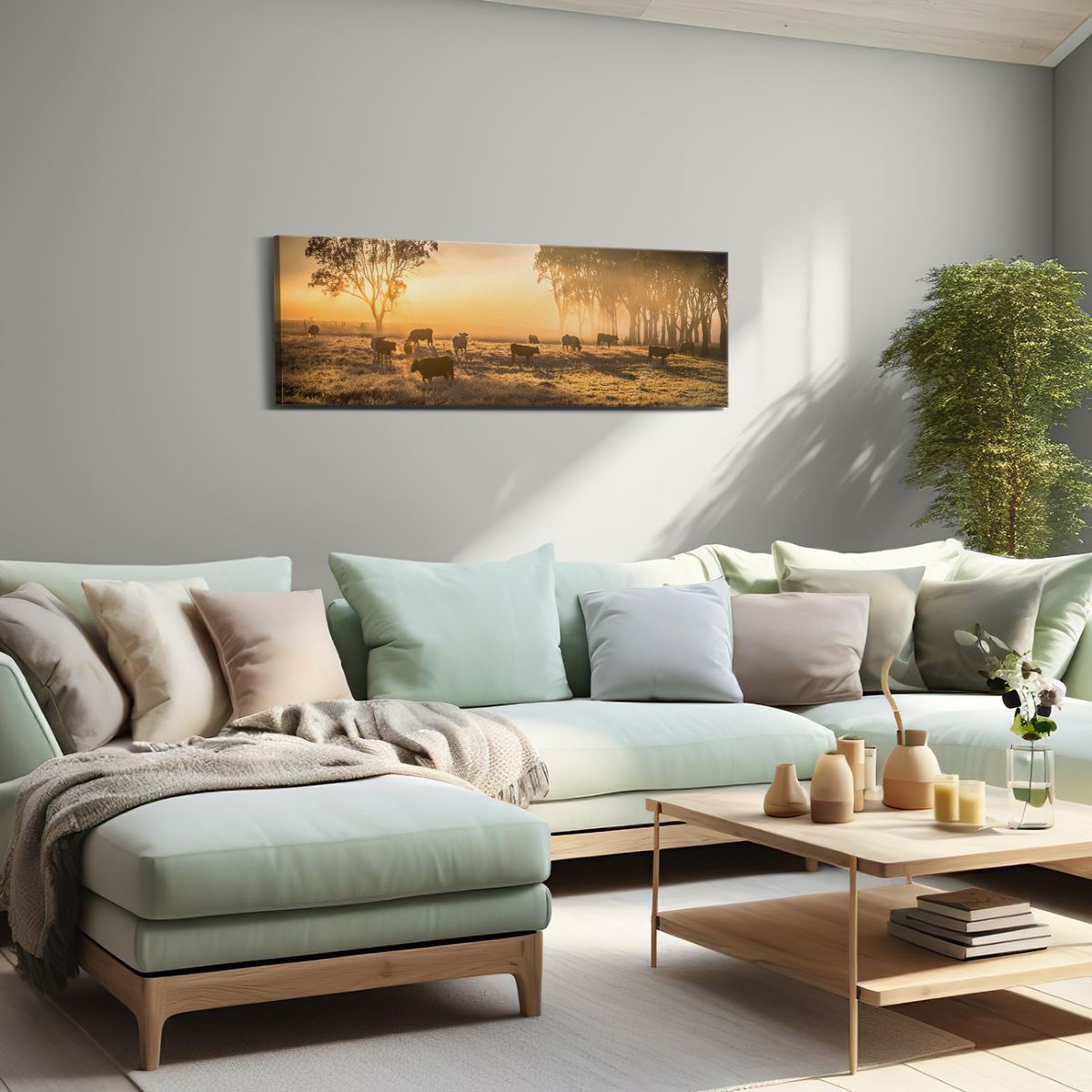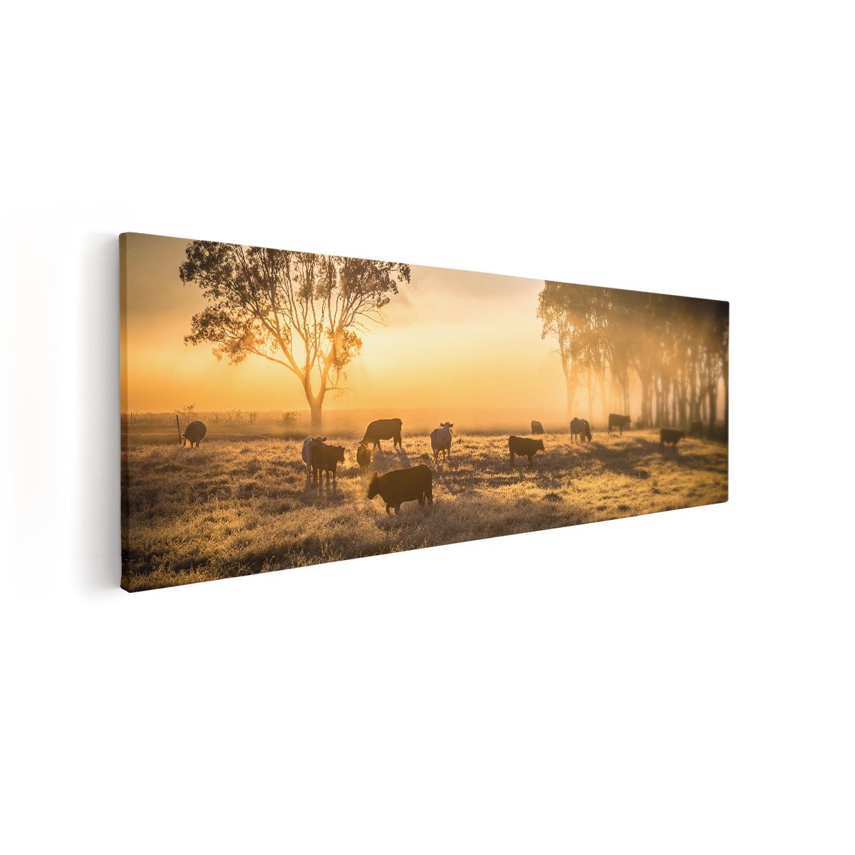 Schilderij Kudde Koeien In De Wei Met Zonsopkomst