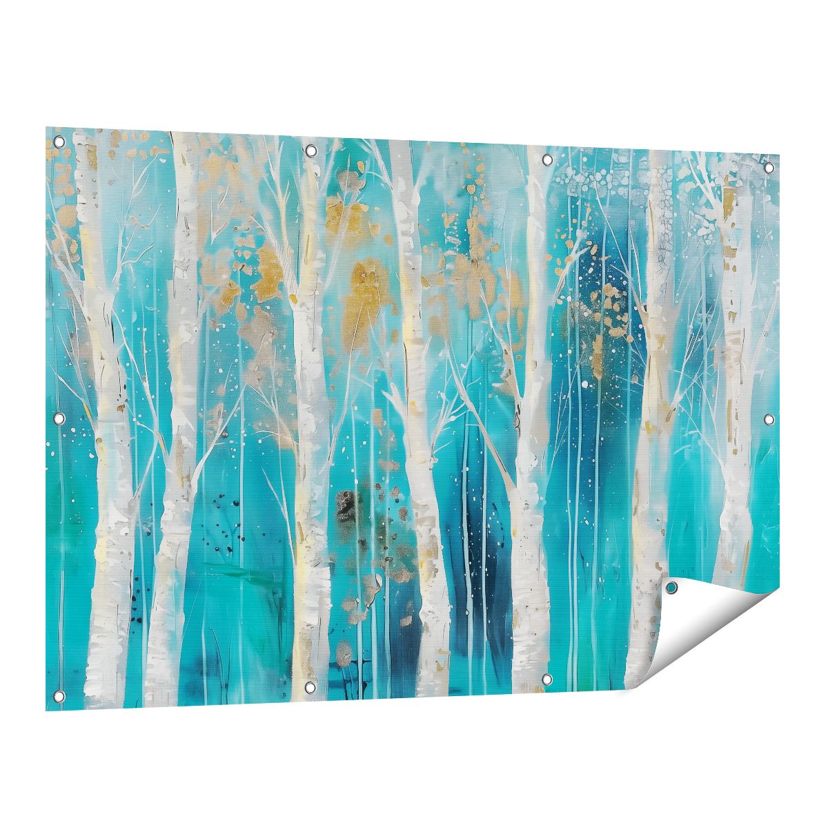 Tuinposter Kunstwerk van Berkenbomen in Blauw en Goud
