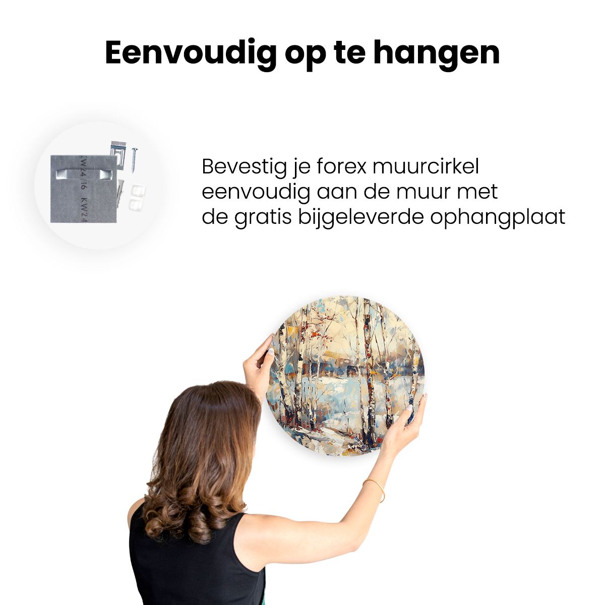 Wandcirkel Kunstwerk van Berkenbomen in de Winter