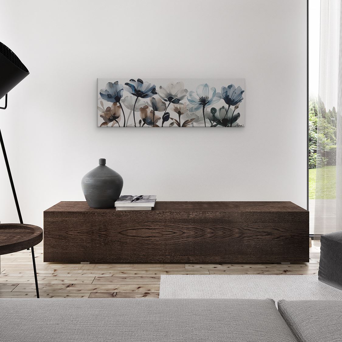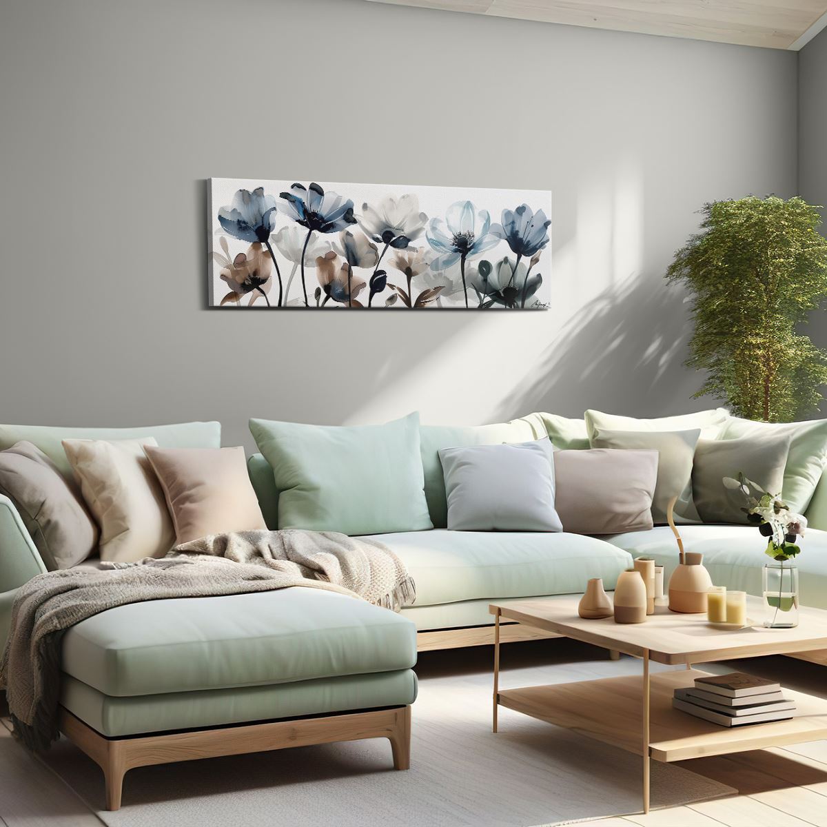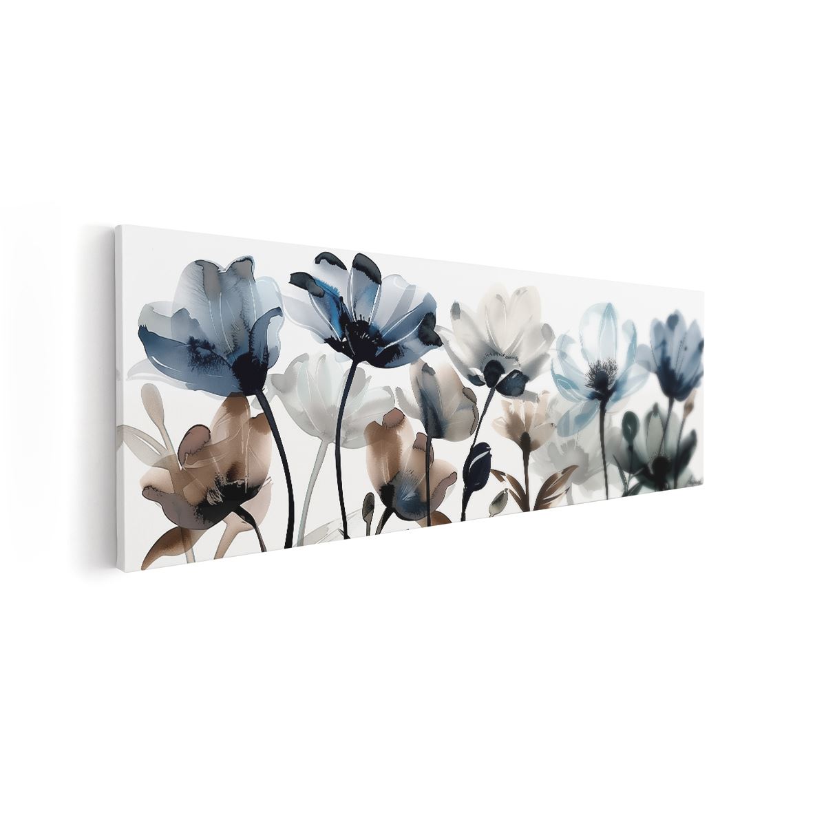 Schilderij Kunstwerk van Blauwe en Bruine Bloemen