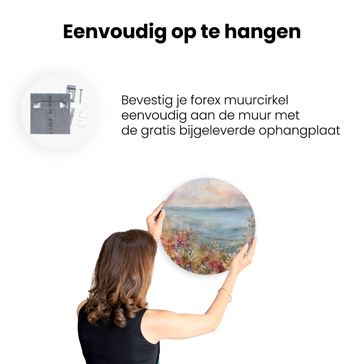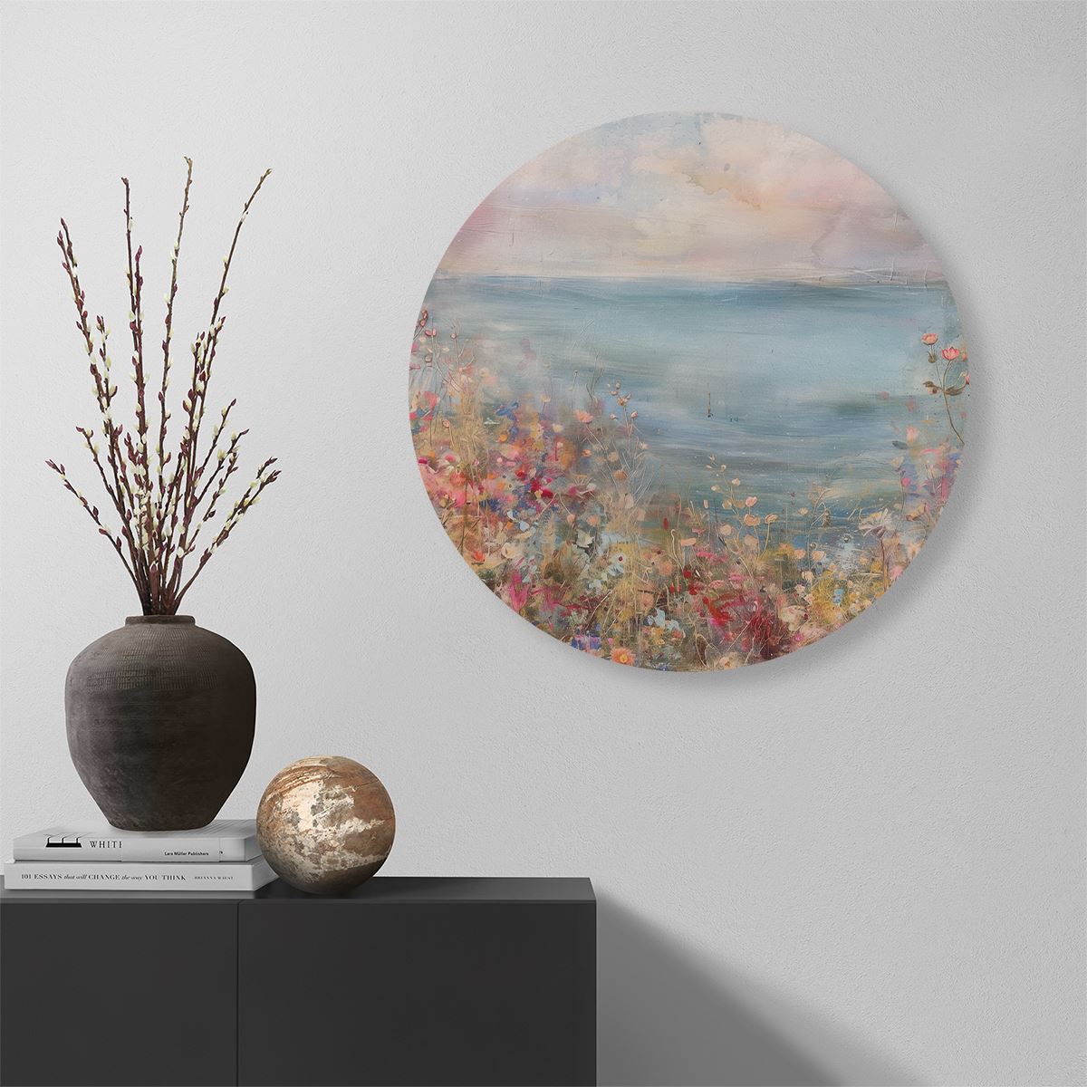 Wandcirkel Kunstwerk van Bloemen aan Zee