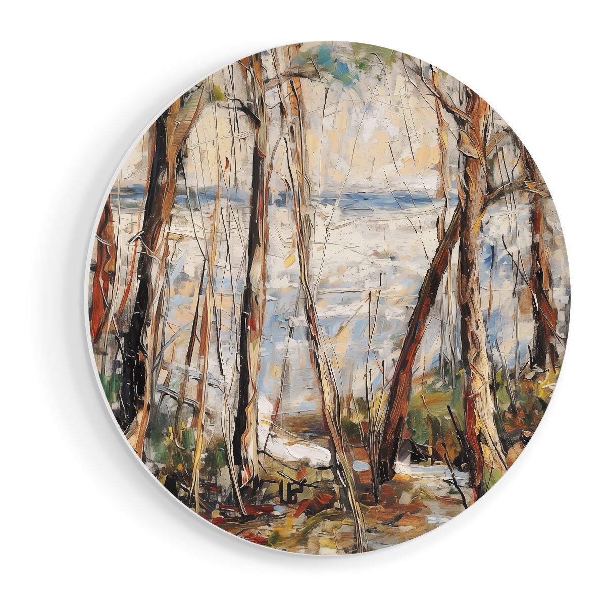 Wandcirkel Kunstwerk van Bomen aan het Water