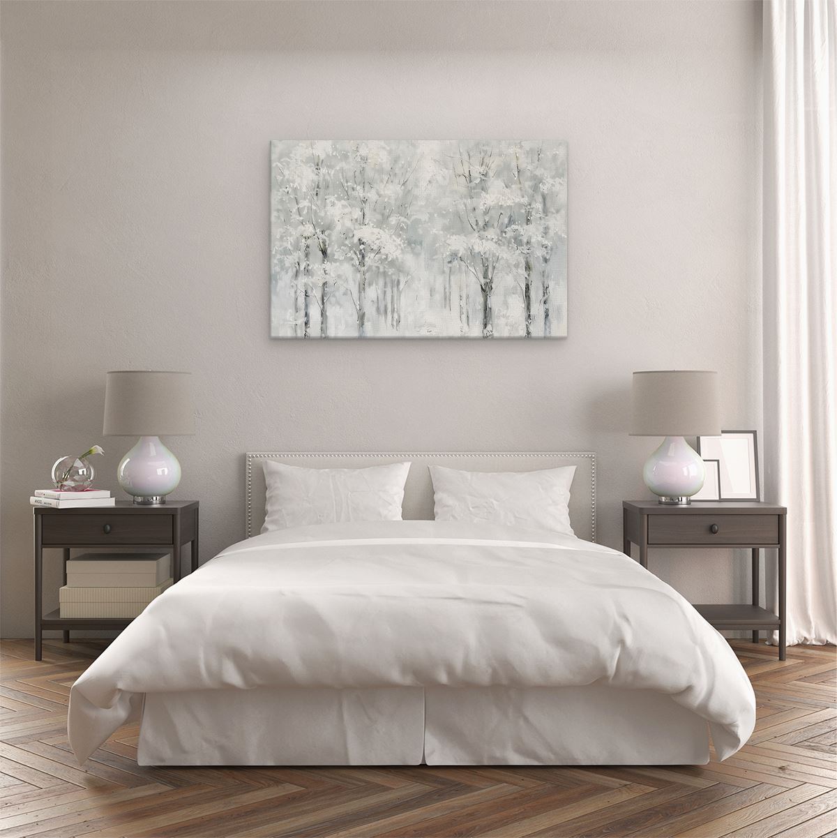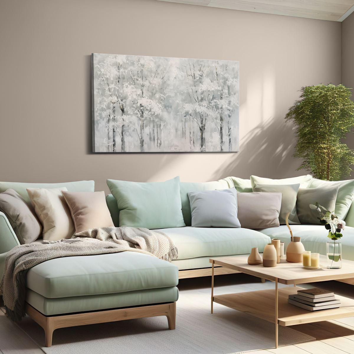 Schilderij Kunstwerk van Bomen Bedekt met Sneeuw