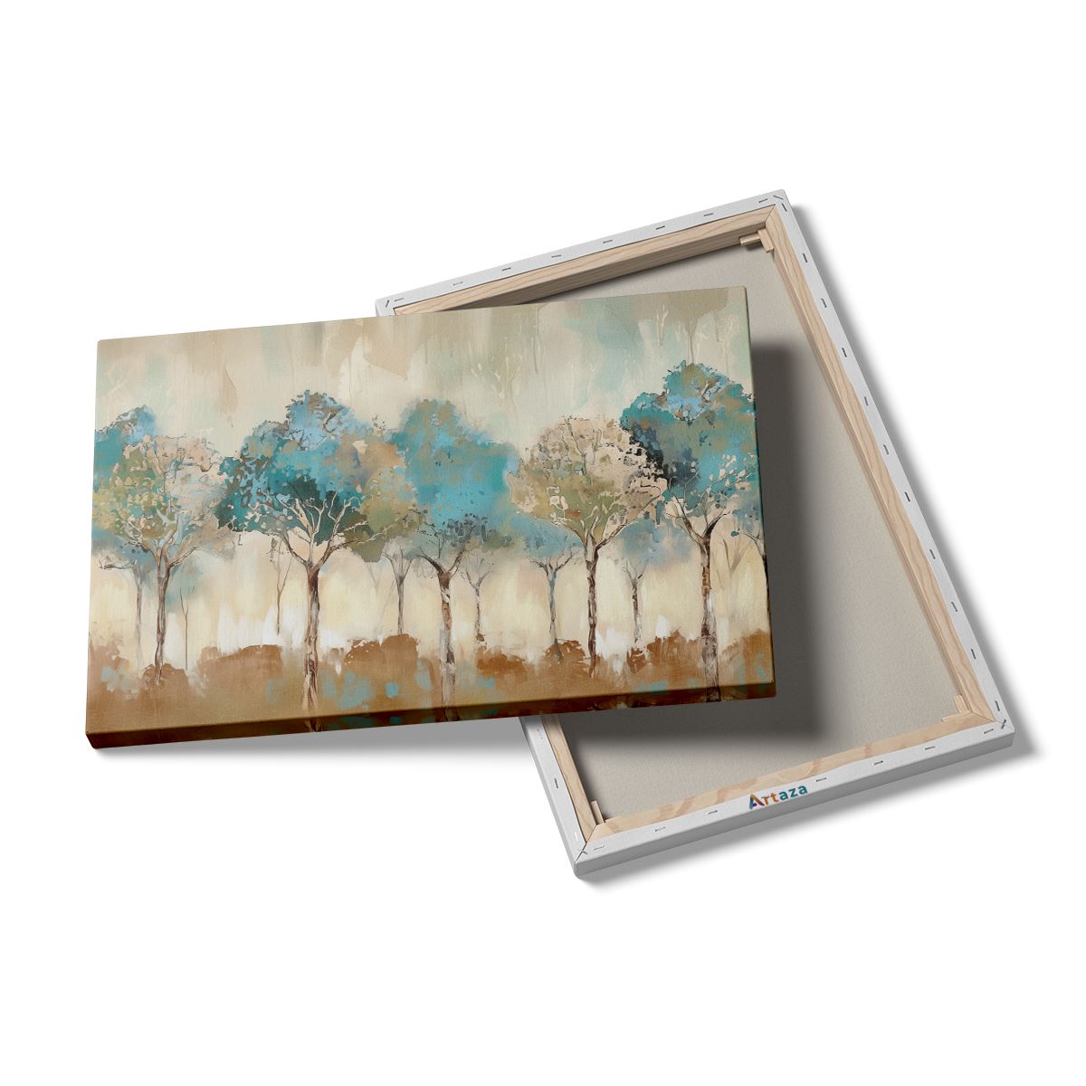 Schilderij Kunstwerk van Bomen in Blauw, Bruin en Bruin