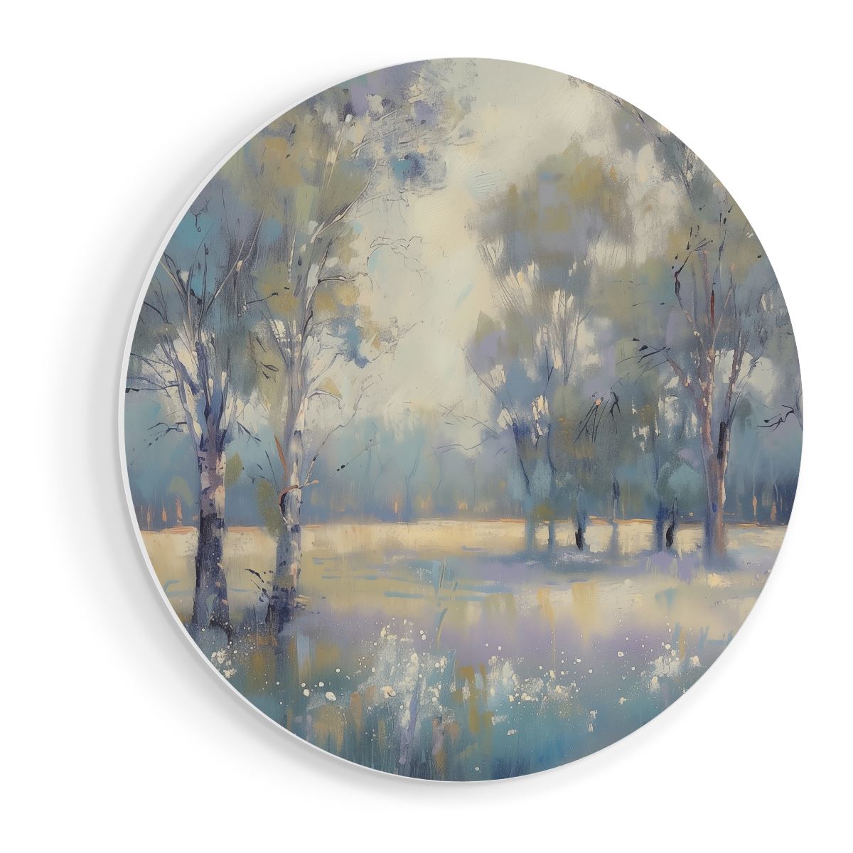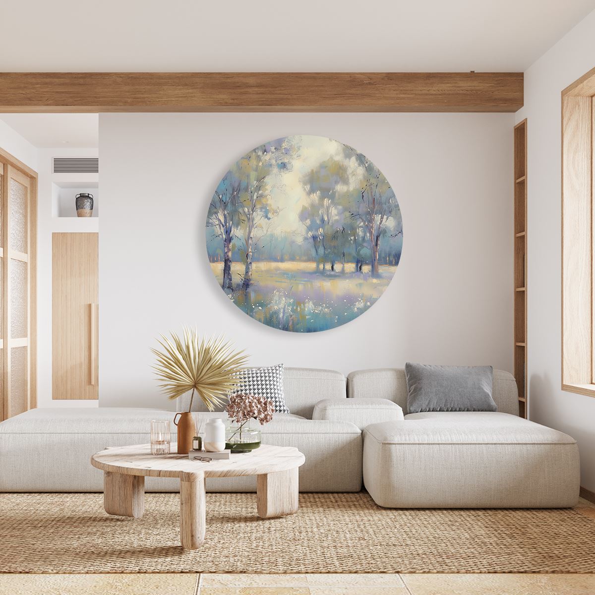 Wandcirkel Kunstwerk van Bomen in een Veld