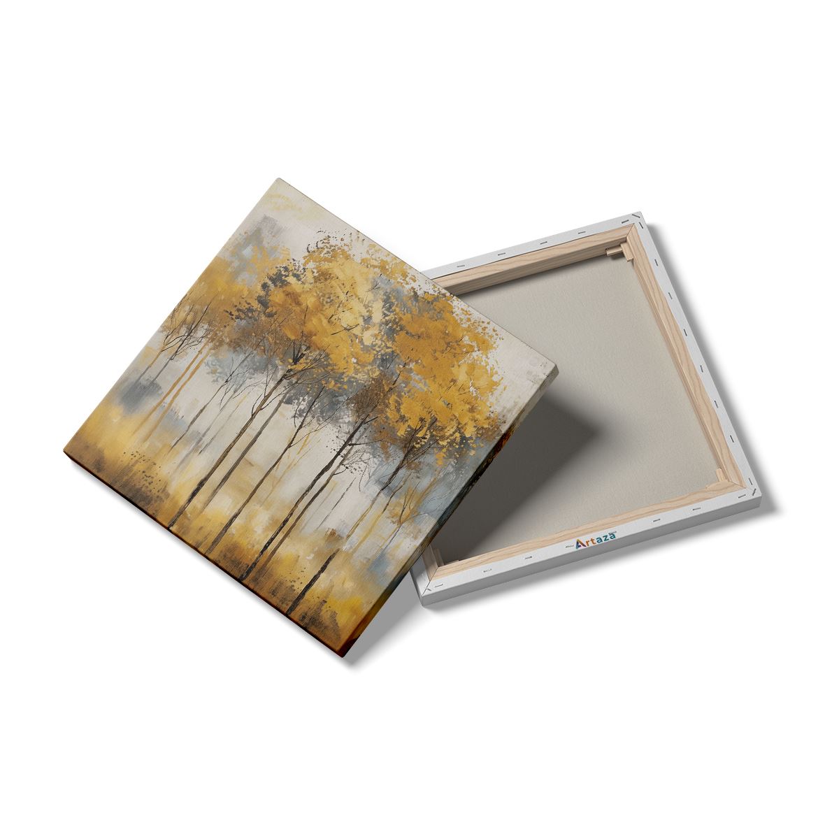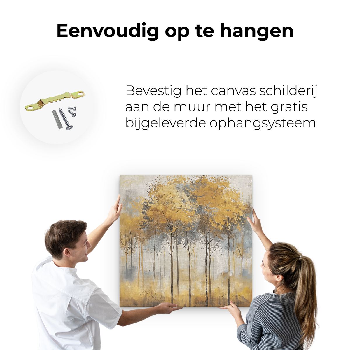 Schilderij Kunstwerk van Bomen in Geel en Grijs