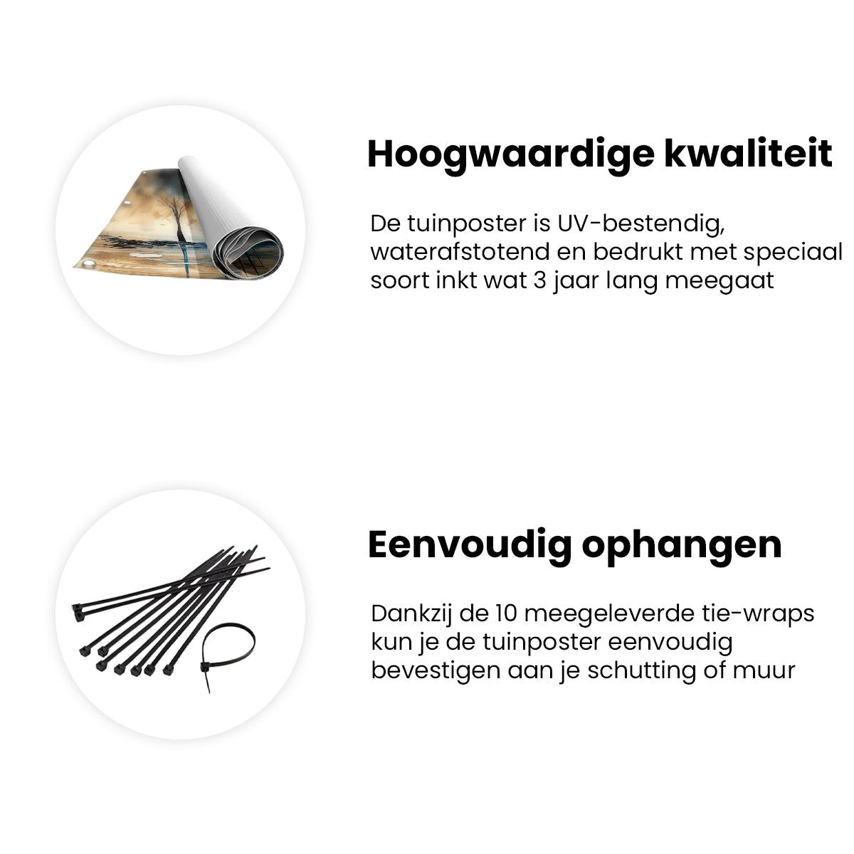 Bij aankoop ontvang je een meegeleverd ophangsysteem, zodat je op een simpele en snelle wijze de tuinposter kan ophangen.