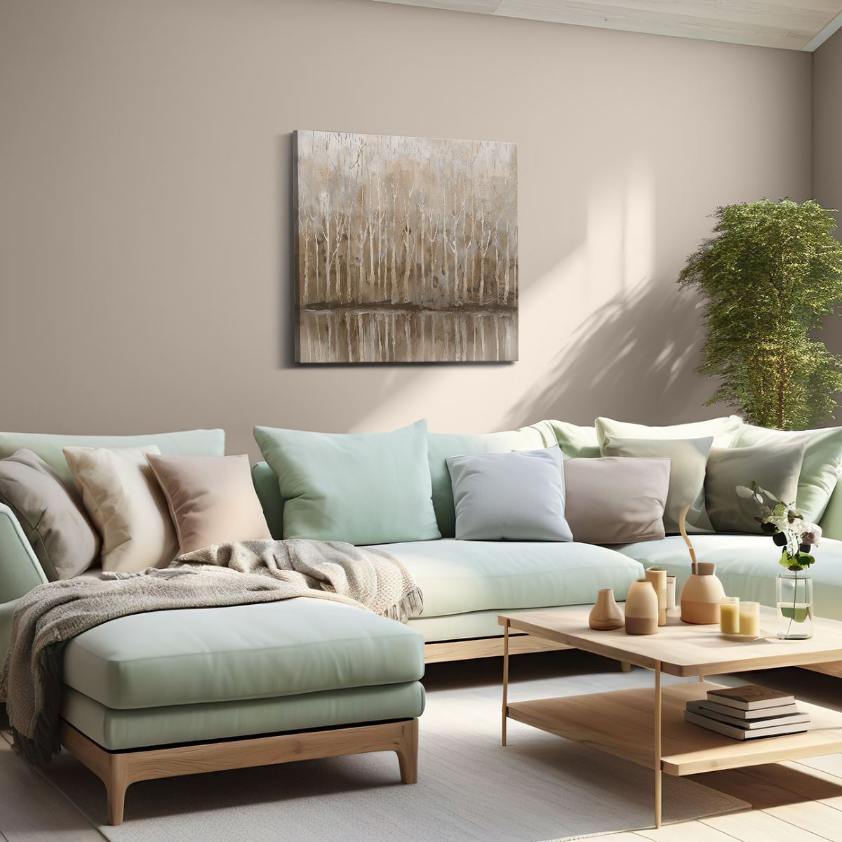 Schilderij Kunstwerk van Bomen Weerspiegeld in een Watermassa