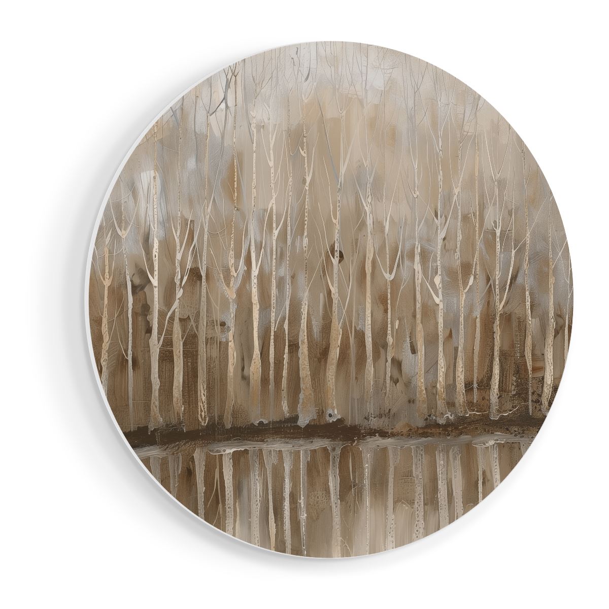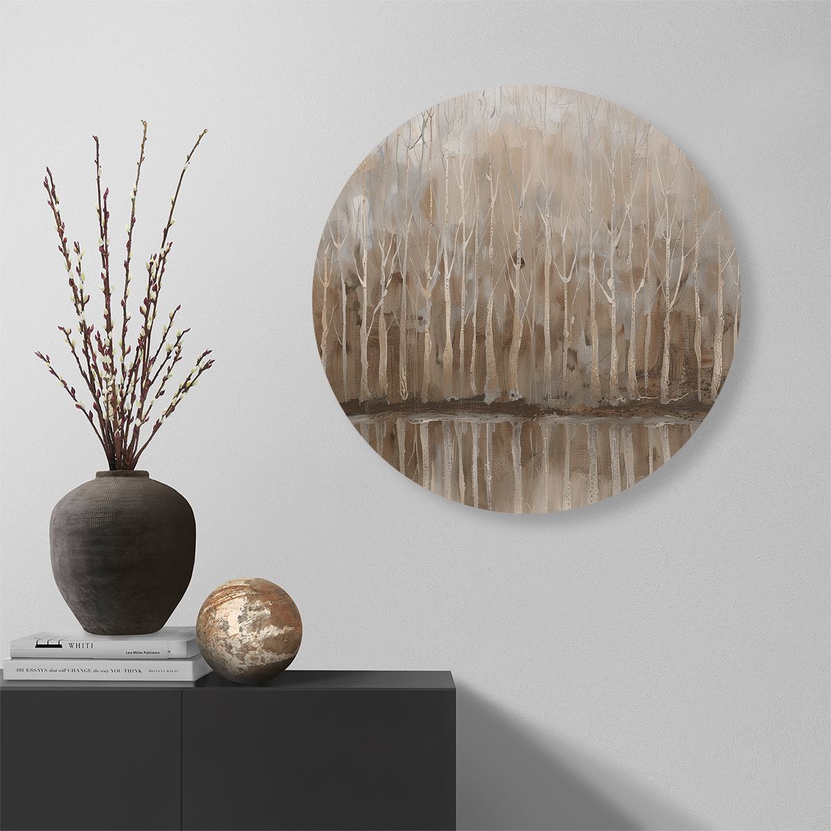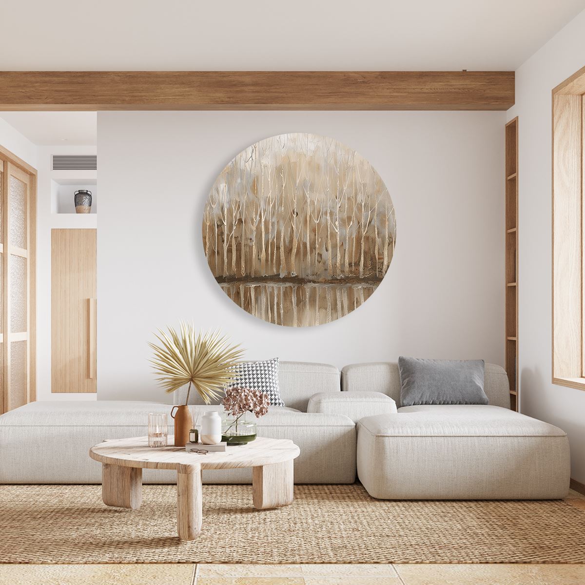Wandcirkel Kunstwerk van Bomen Weerspiegeld in een Watermassa