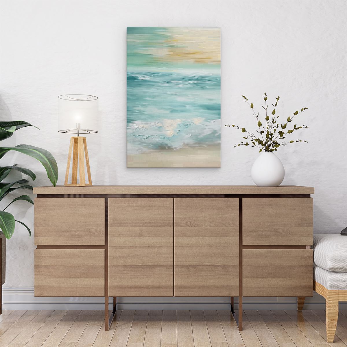 Schilderij Kunstwerk van de Oceaan bij Zonsondergang