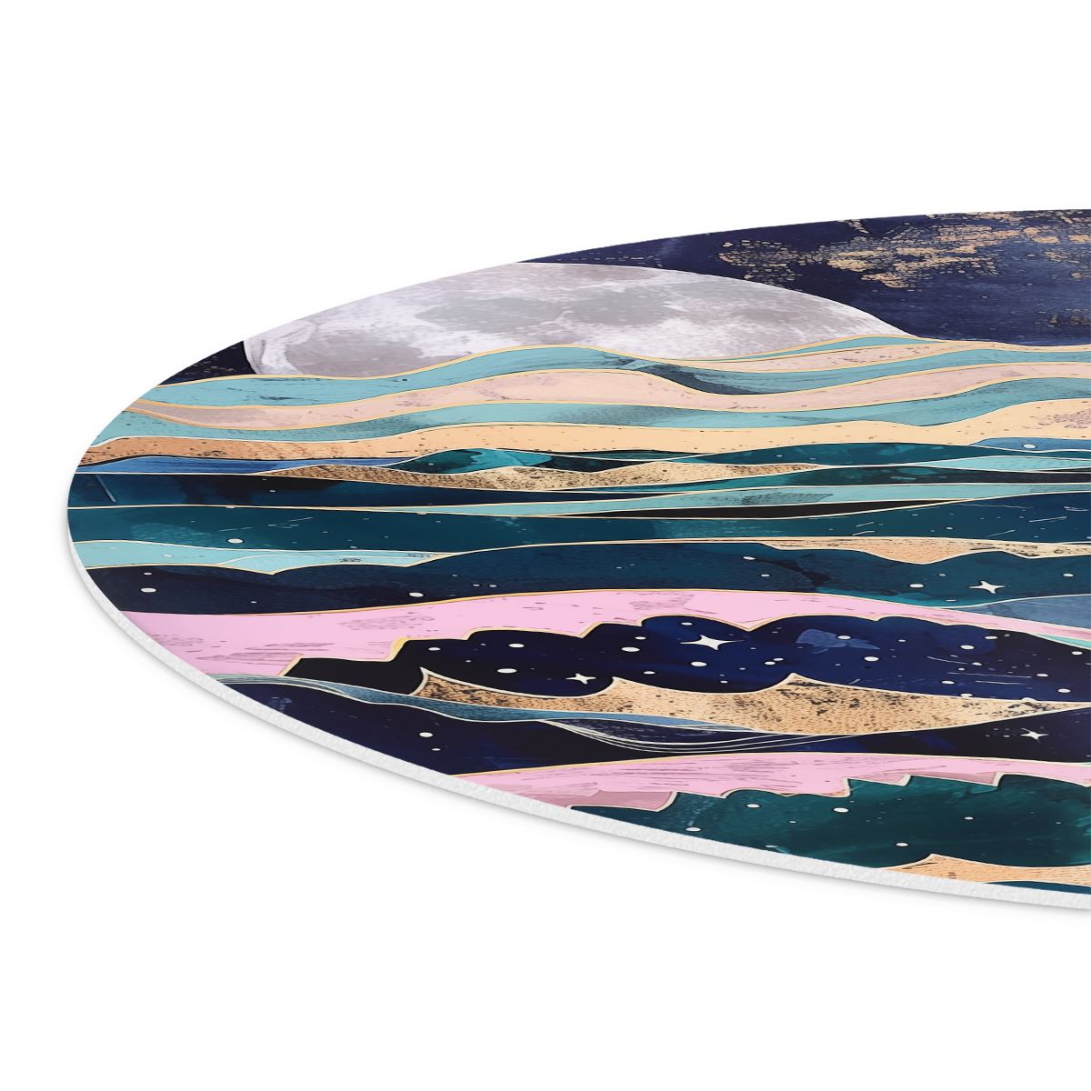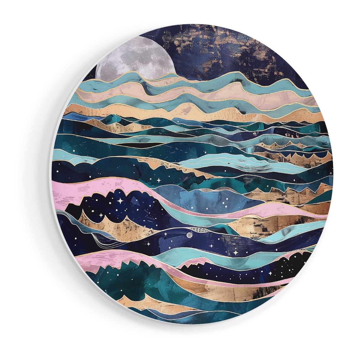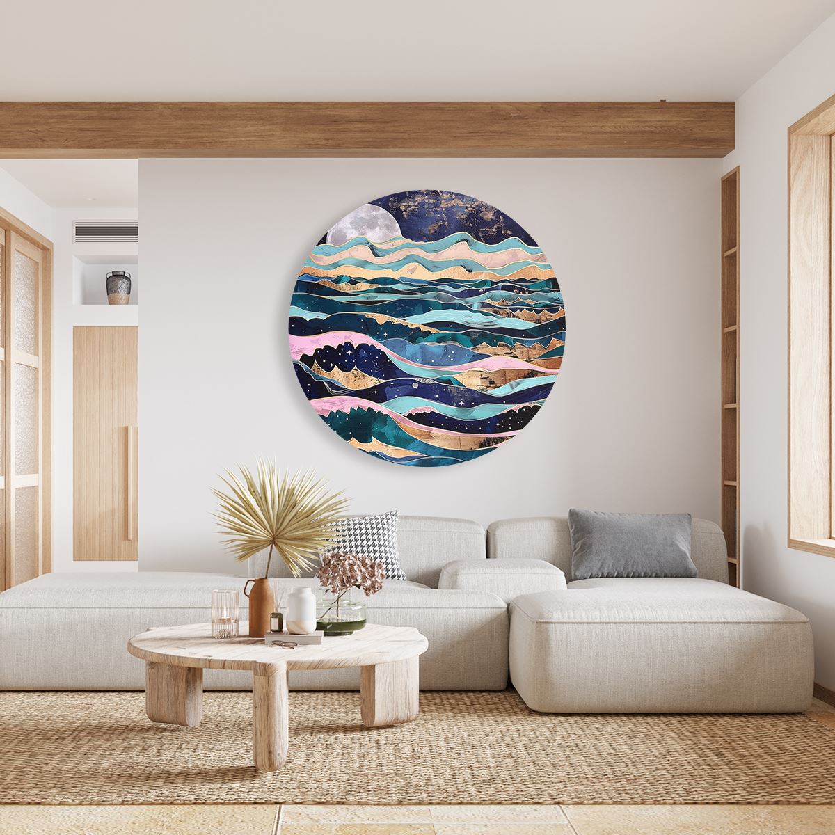 Wandcirkel Kunstwerk van de Oceaan met Golven en een Maan