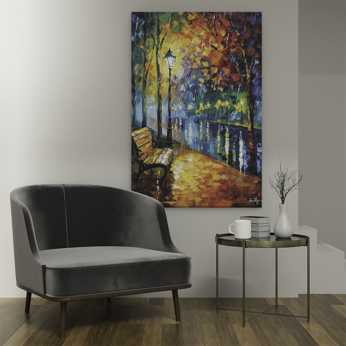 Bij aankoop ontvang je een meegeleverd ophangsysteem, zodat je op een simpele en snelle wijze het schilderij boven de bank of bed kan monteren.