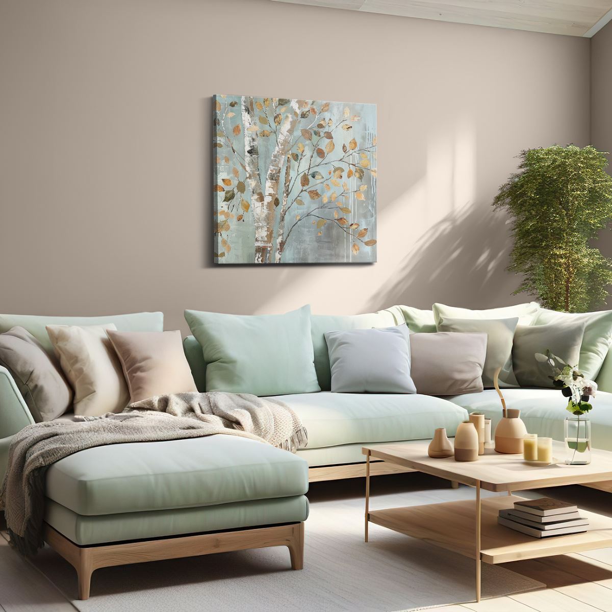 Schilderij Kunstwerk van een Berk met Herfstbladeren
