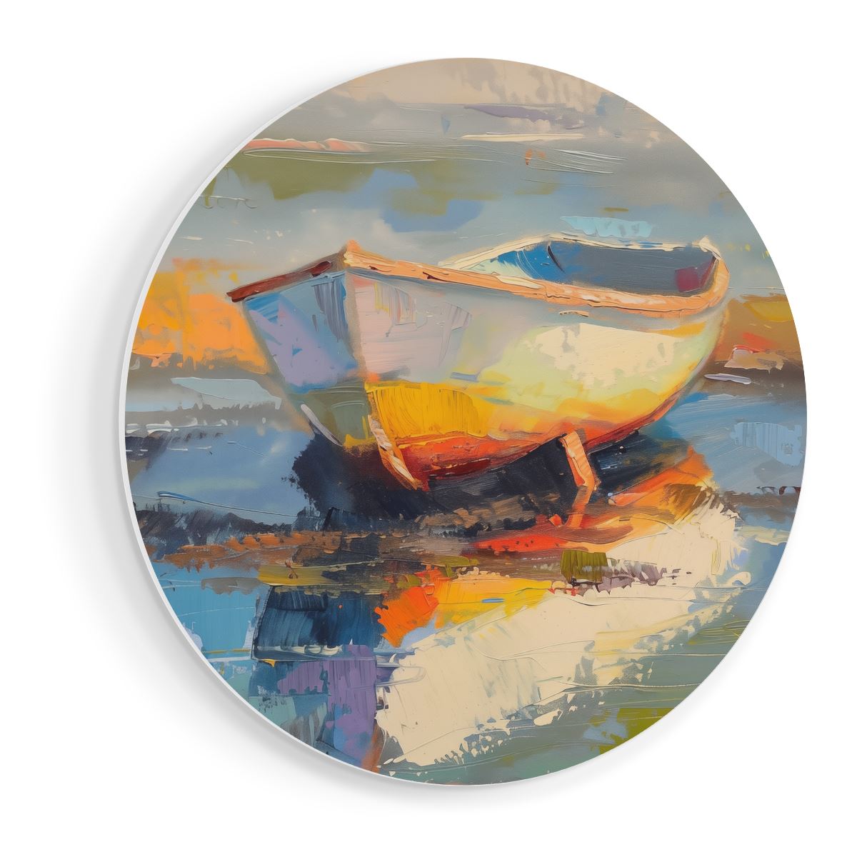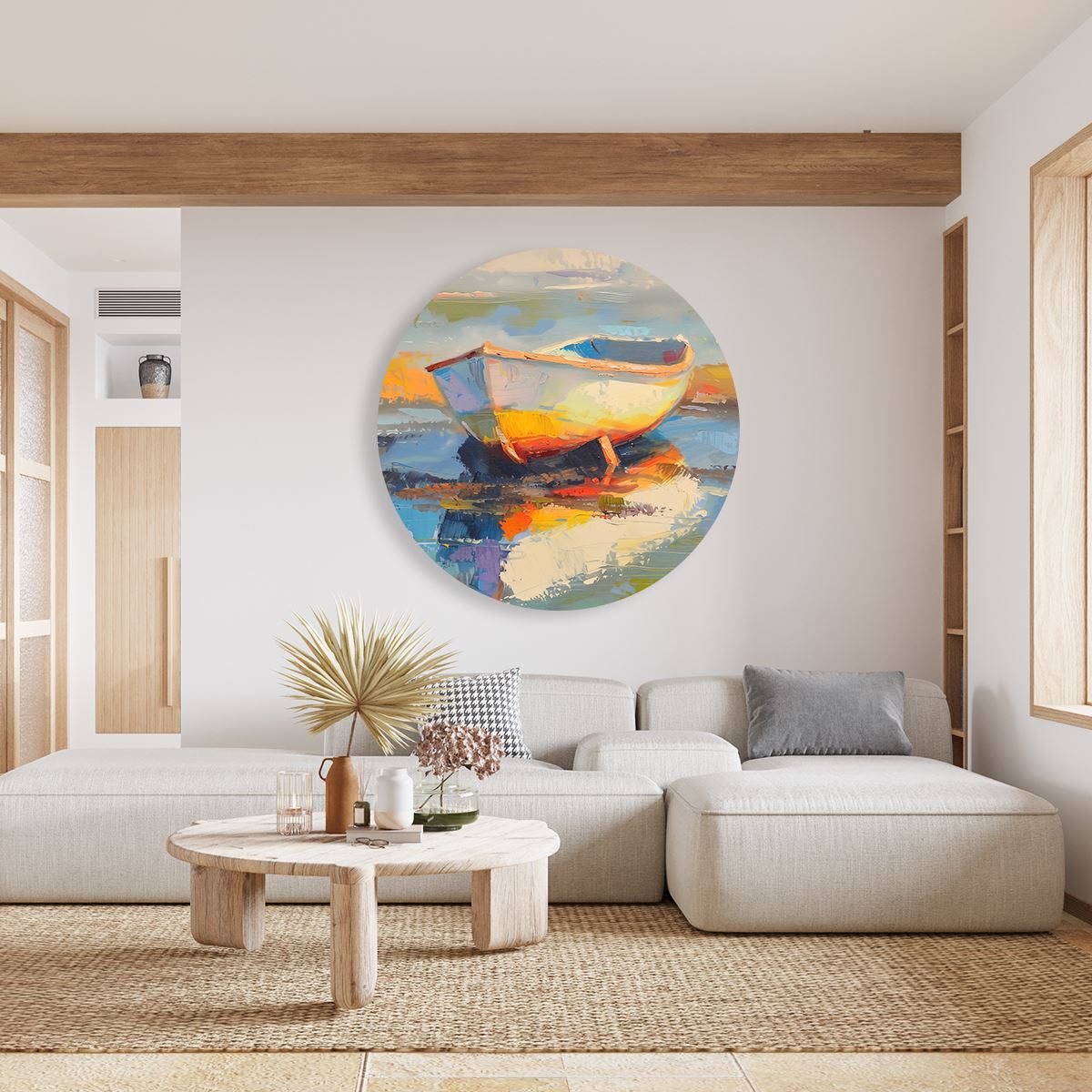 Wandcirkel Kunstwerk van een Boot aan de Kust
