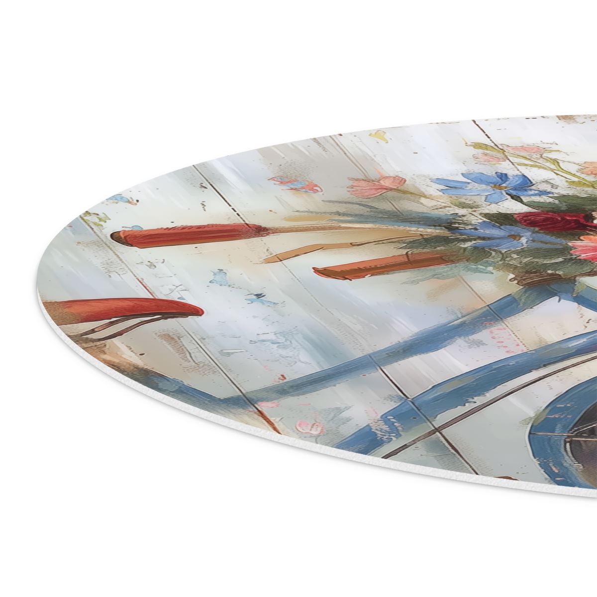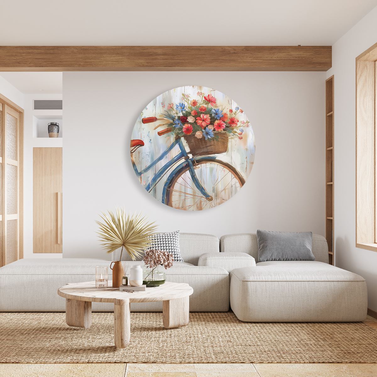 Wandcirkel Kunstwerk van een Fiets met Bloemen in een Mand