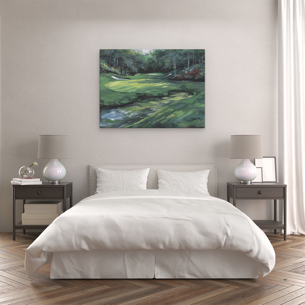 Schilderij Kunstwerk van een Golfbaan in het Bos