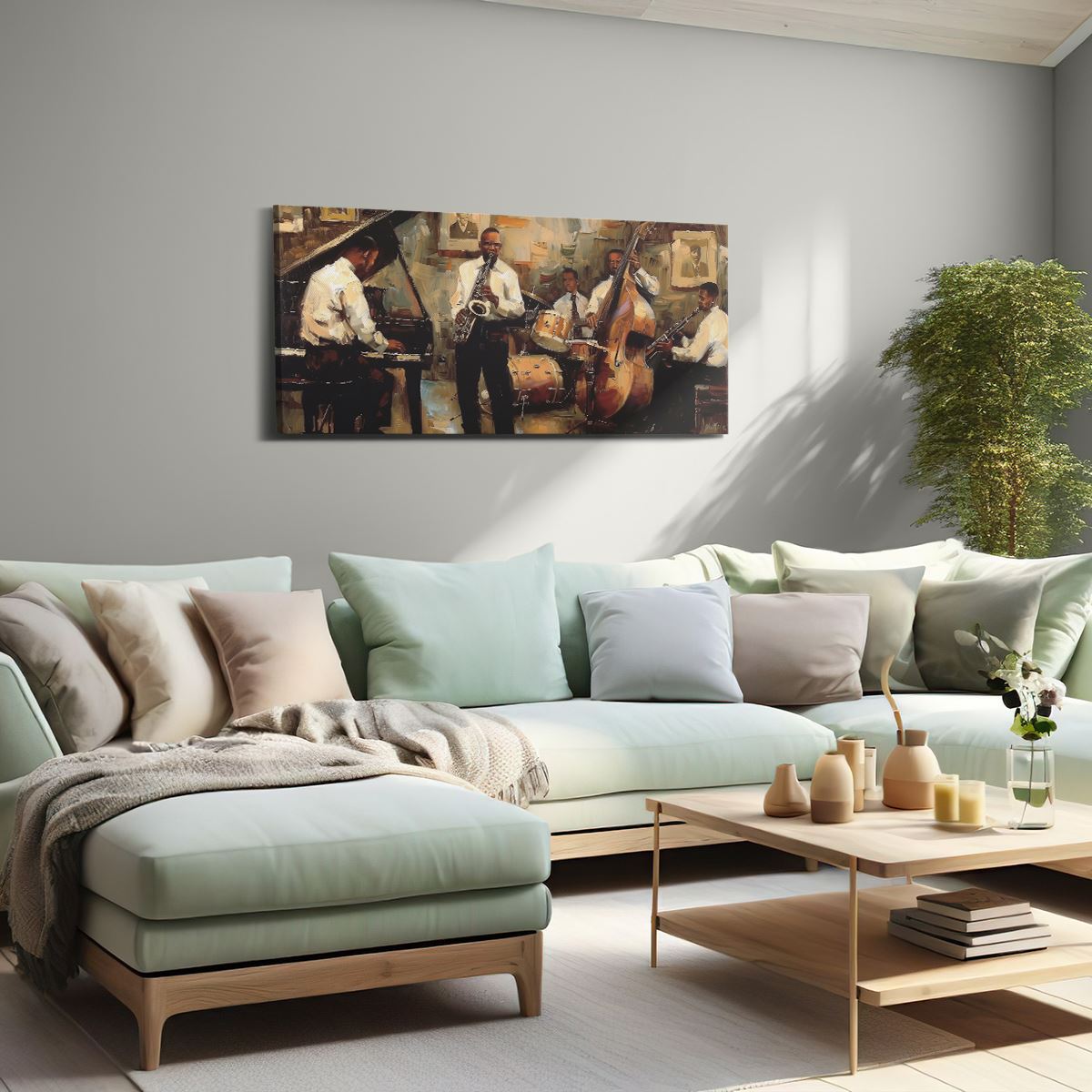 Schilderij Kunstwerk van een Groep Muzikanten die Muziek Spelen