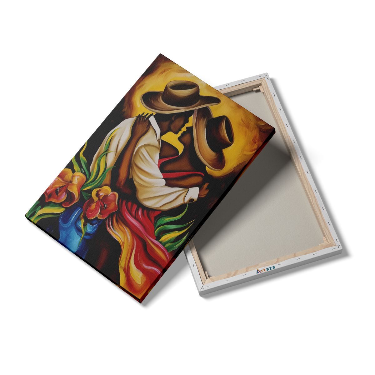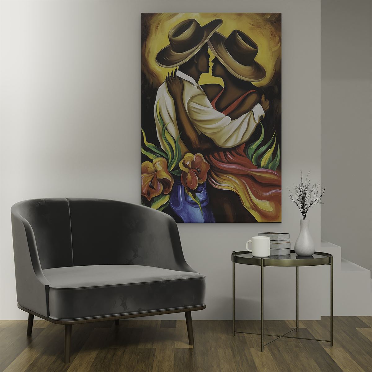Schilderij Kunstwerk van een Kussend Stel met Hoeden