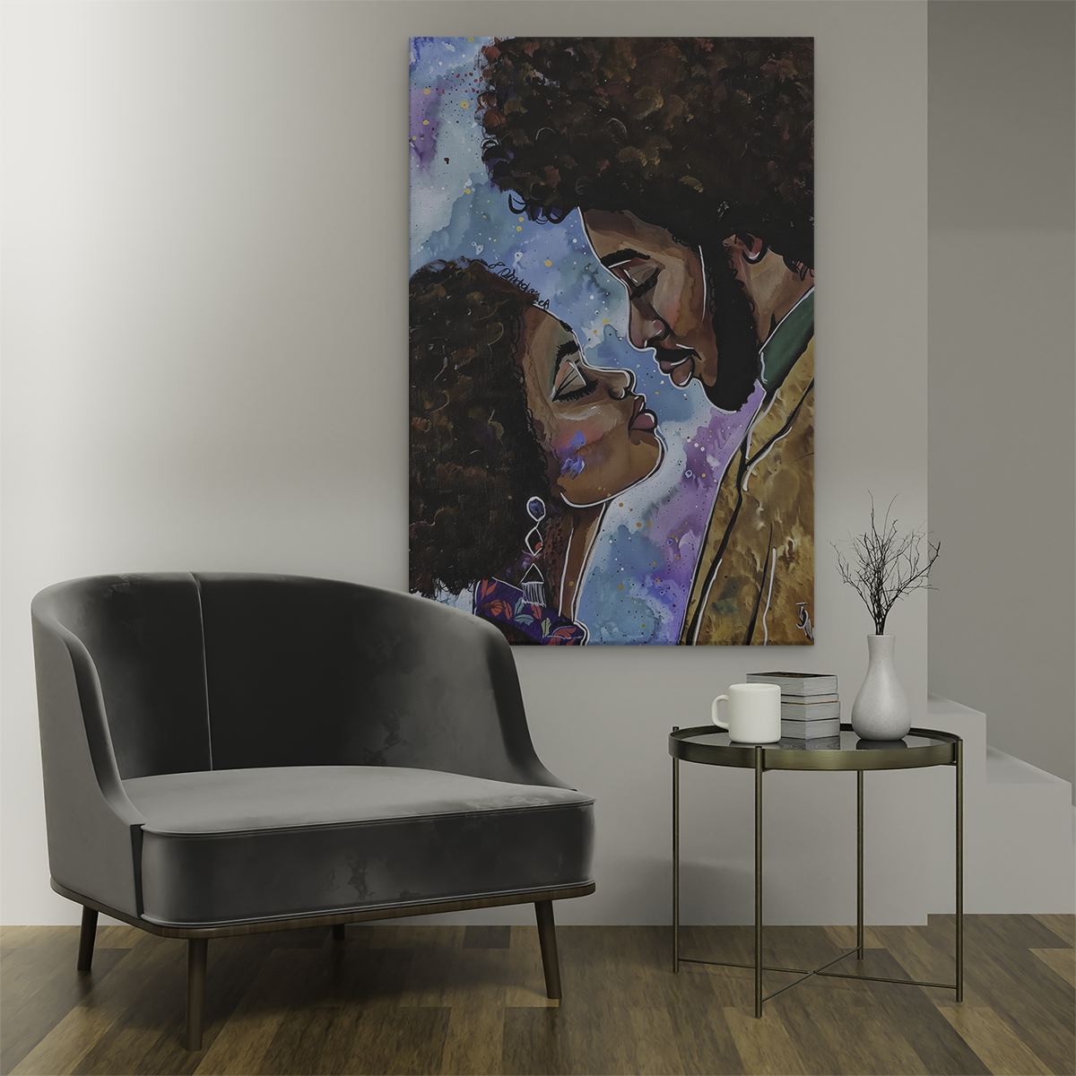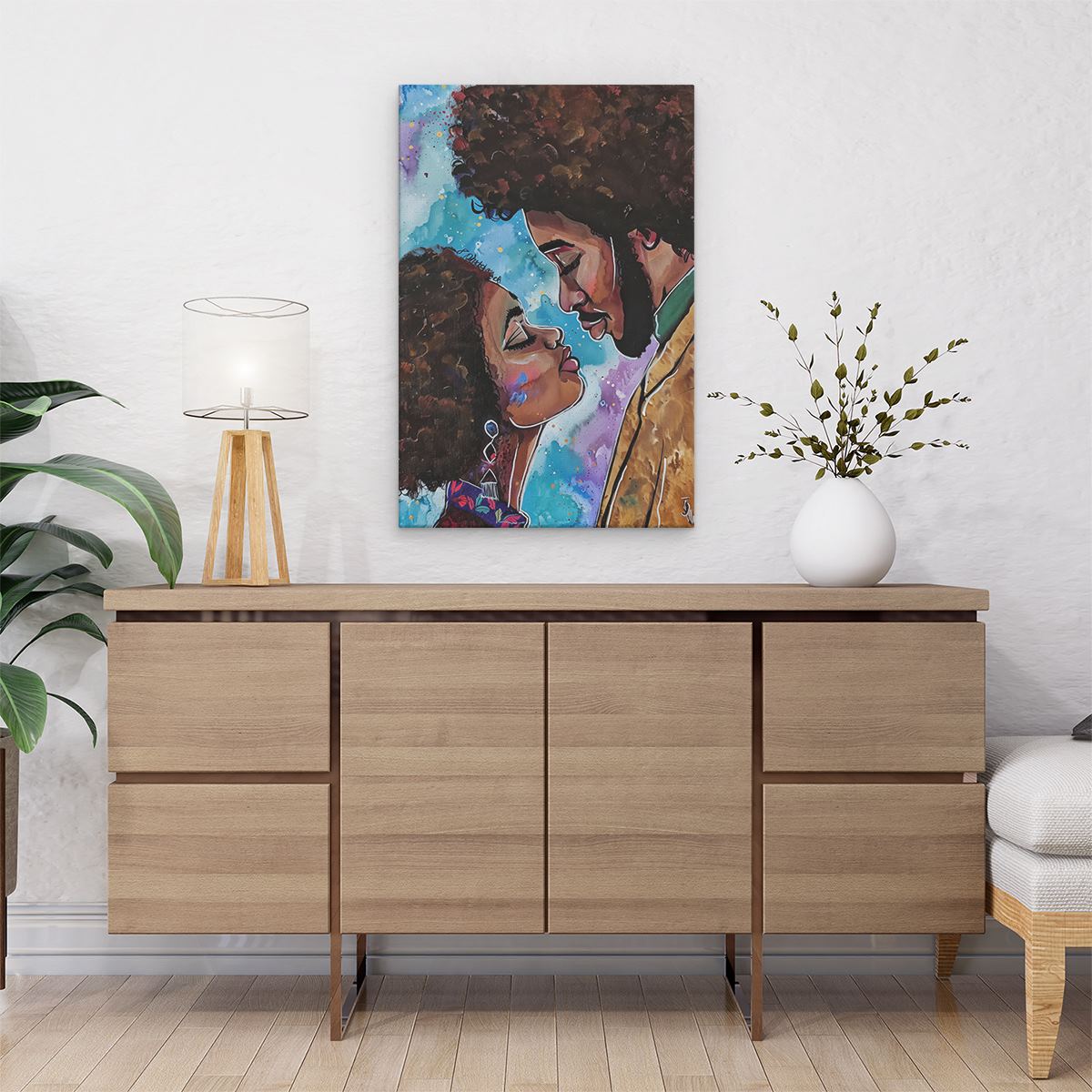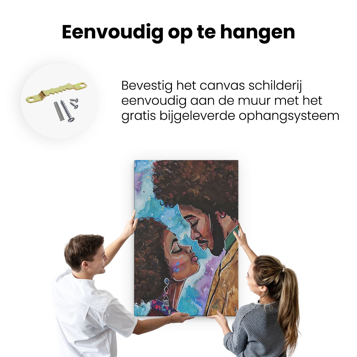 Schilderij Kunstwerk van een Man en een Vrouw die Elkaar Kussen