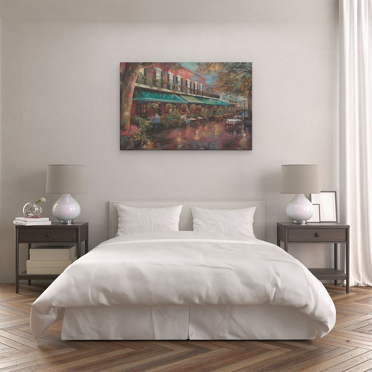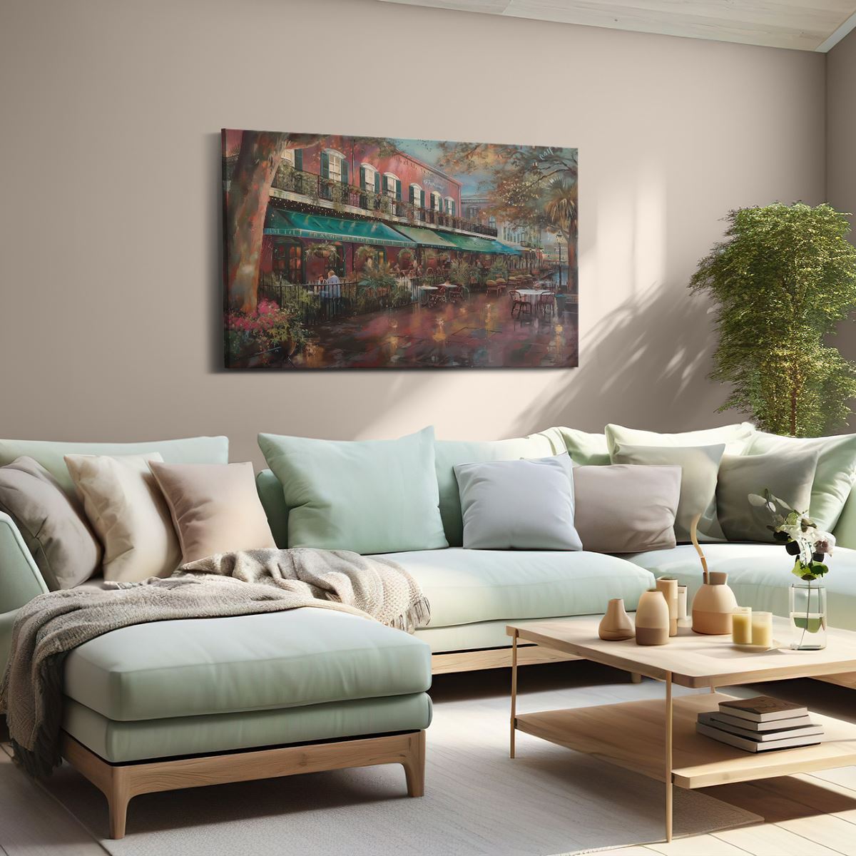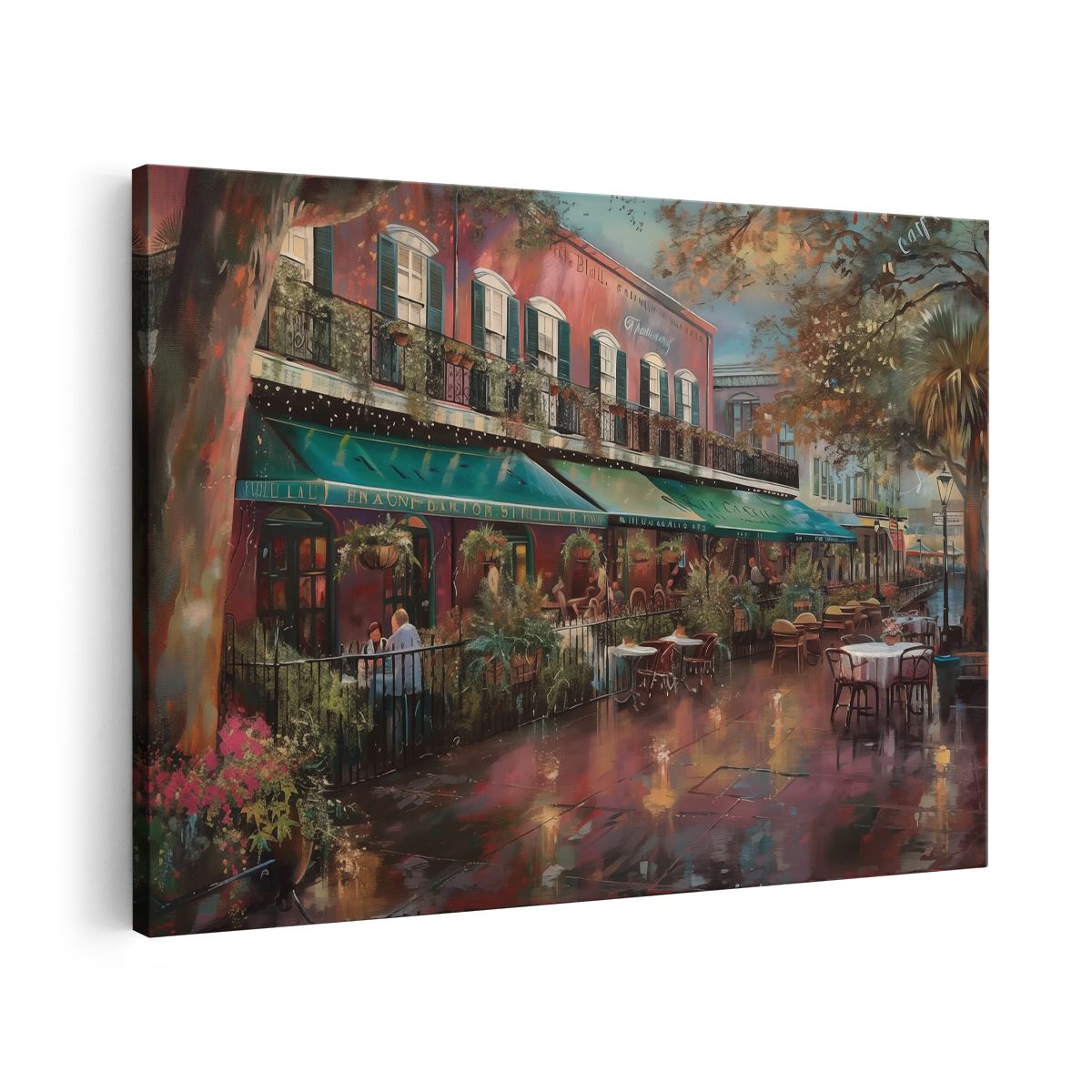 Schilderij Kunstwerk van een Restaurant in de Regen