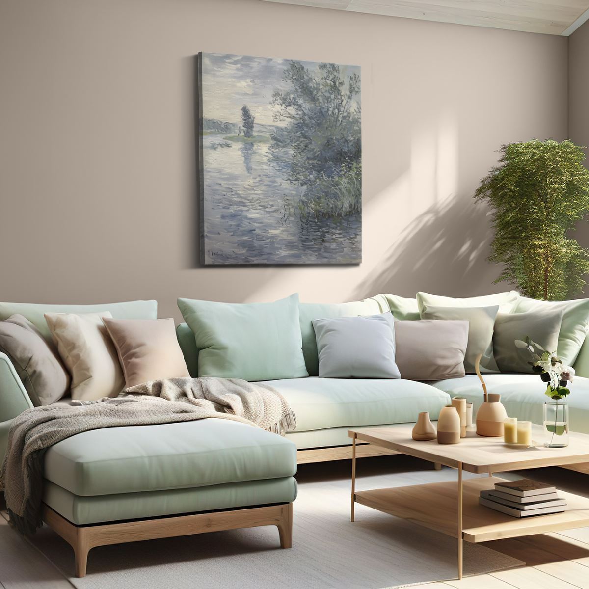Schilderij Kunstwerk van een Rivier en Bomen