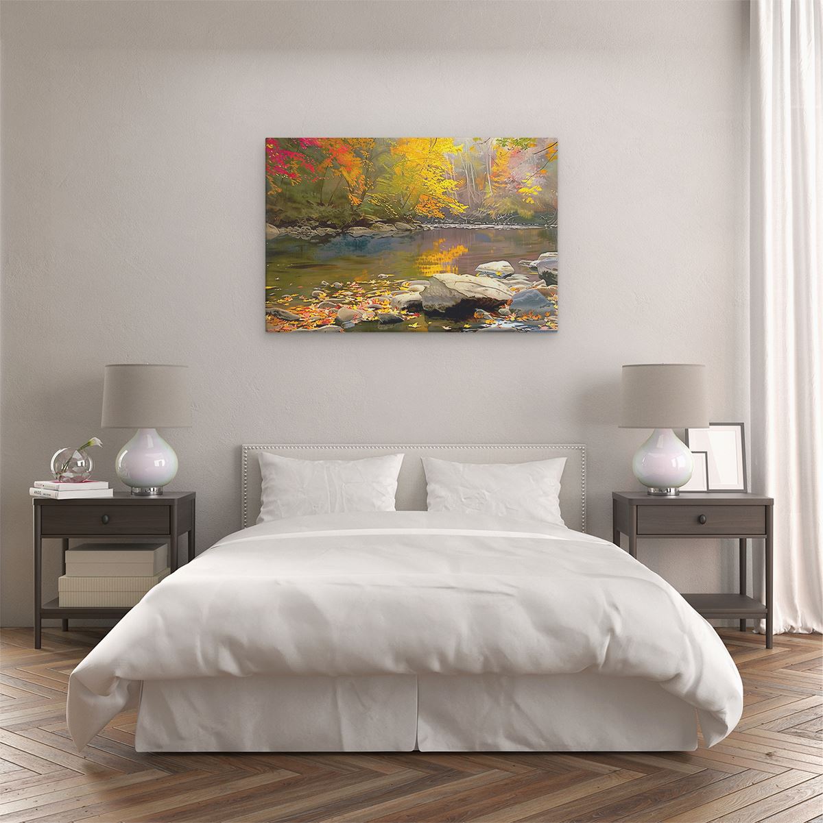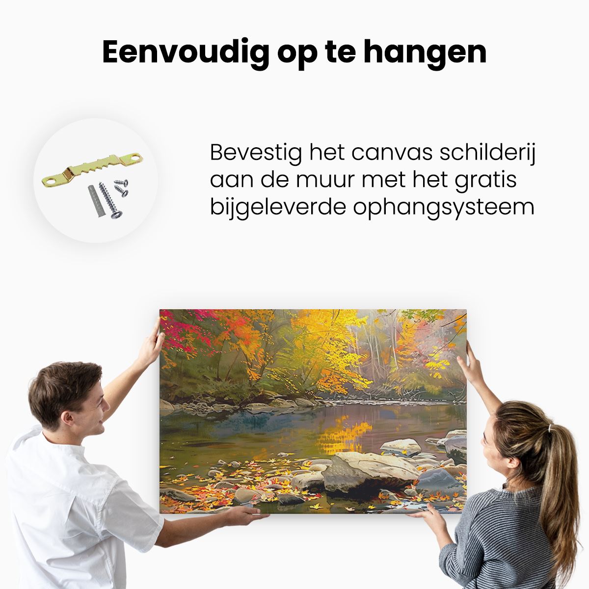 Schilderij Kunstwerk van een Rivier in de Herfst