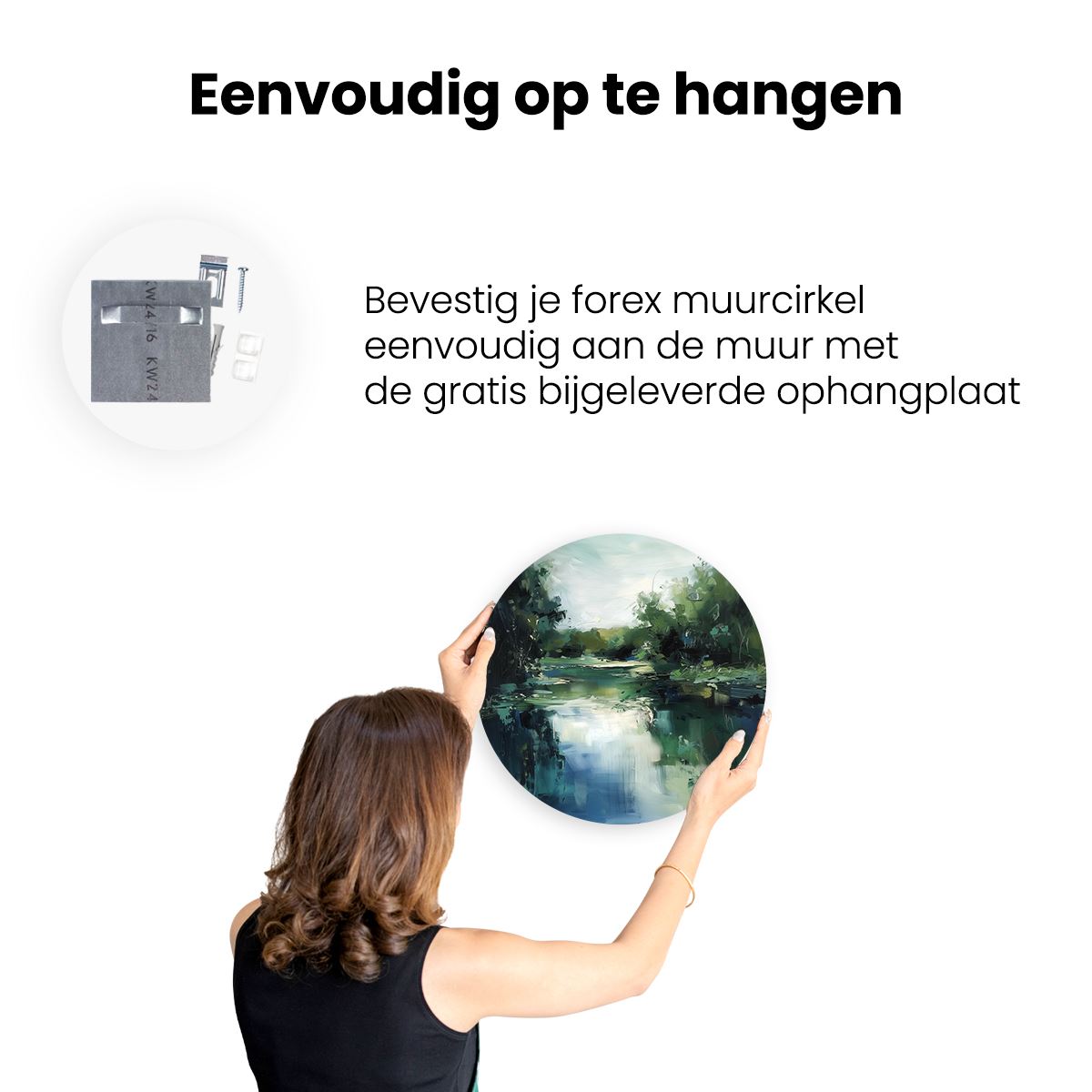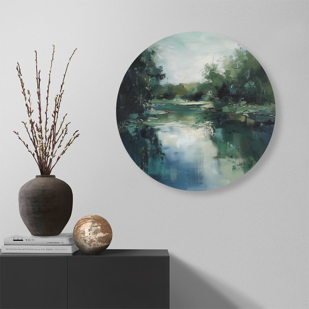 Wandcirkel Kunstwerk van een Rivier Omgeven door Bomen