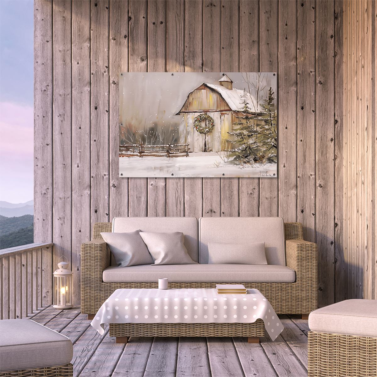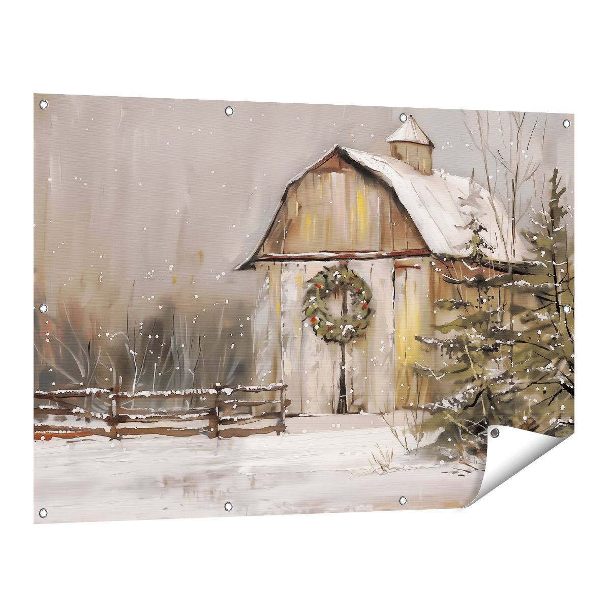 Tuinposter Kunstwerk van een Schuur met een Krans Erop