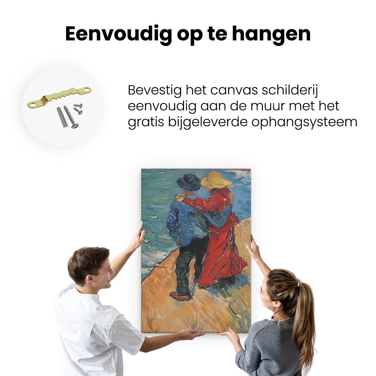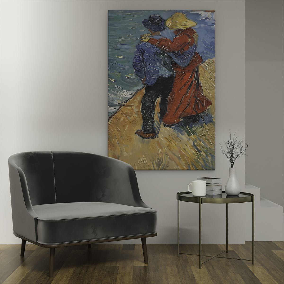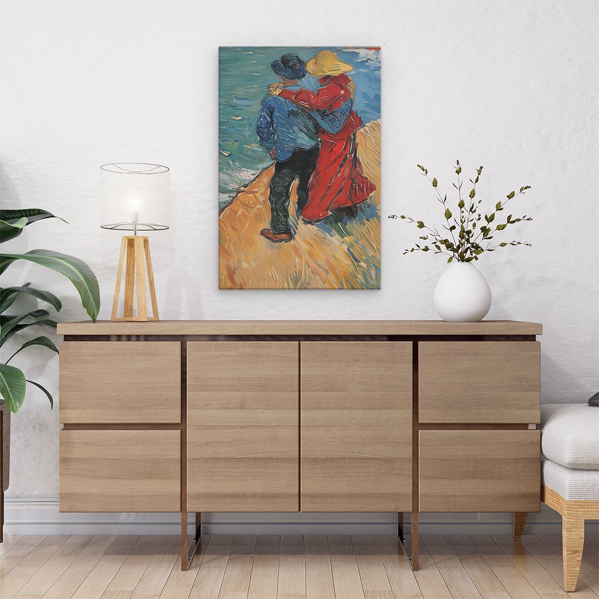 Schilderij Kunstwerk van een Stel dat op het Strand loopt