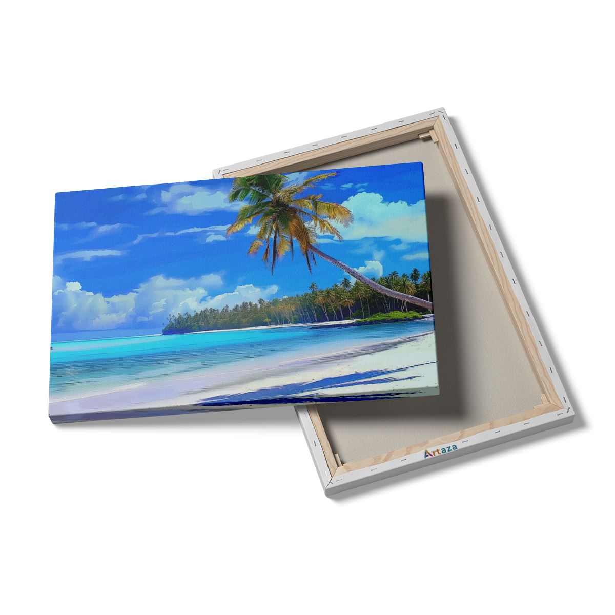 Schilderij Kunstwerk van een Strand met Palmbomen