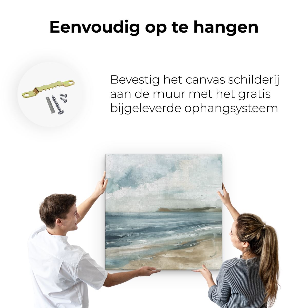 Bij aankoop ontvang je een meegeleverd ophangsysteem, zodat je op een simpele en snelle wijze het schilderij boven de bank of bed kan monteren.