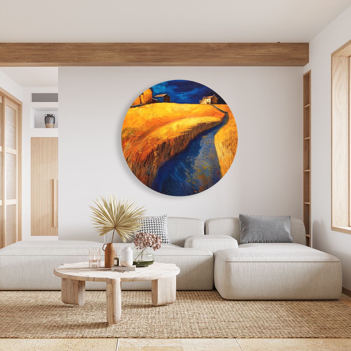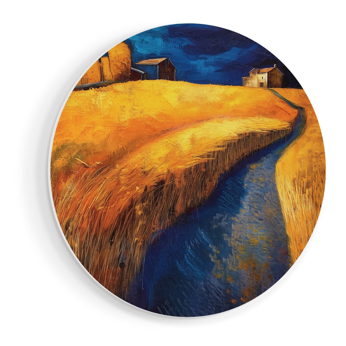 Wandcirkel Kunstwerk van een Tarweveld en een Beekje