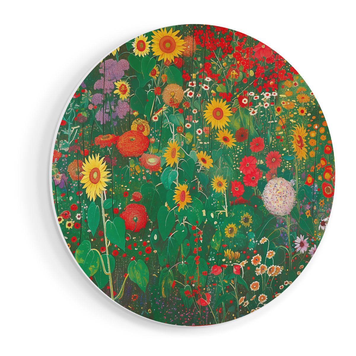 Wandcirkel Kunstwerk van een Tuin met Zonnebloemen en andere Bloemen