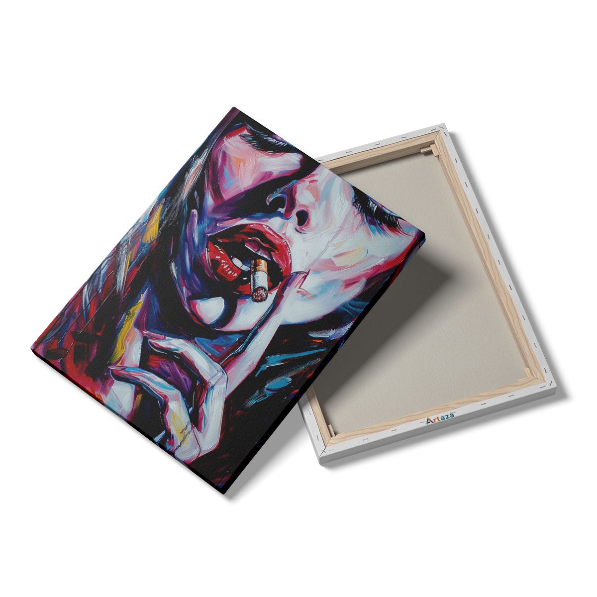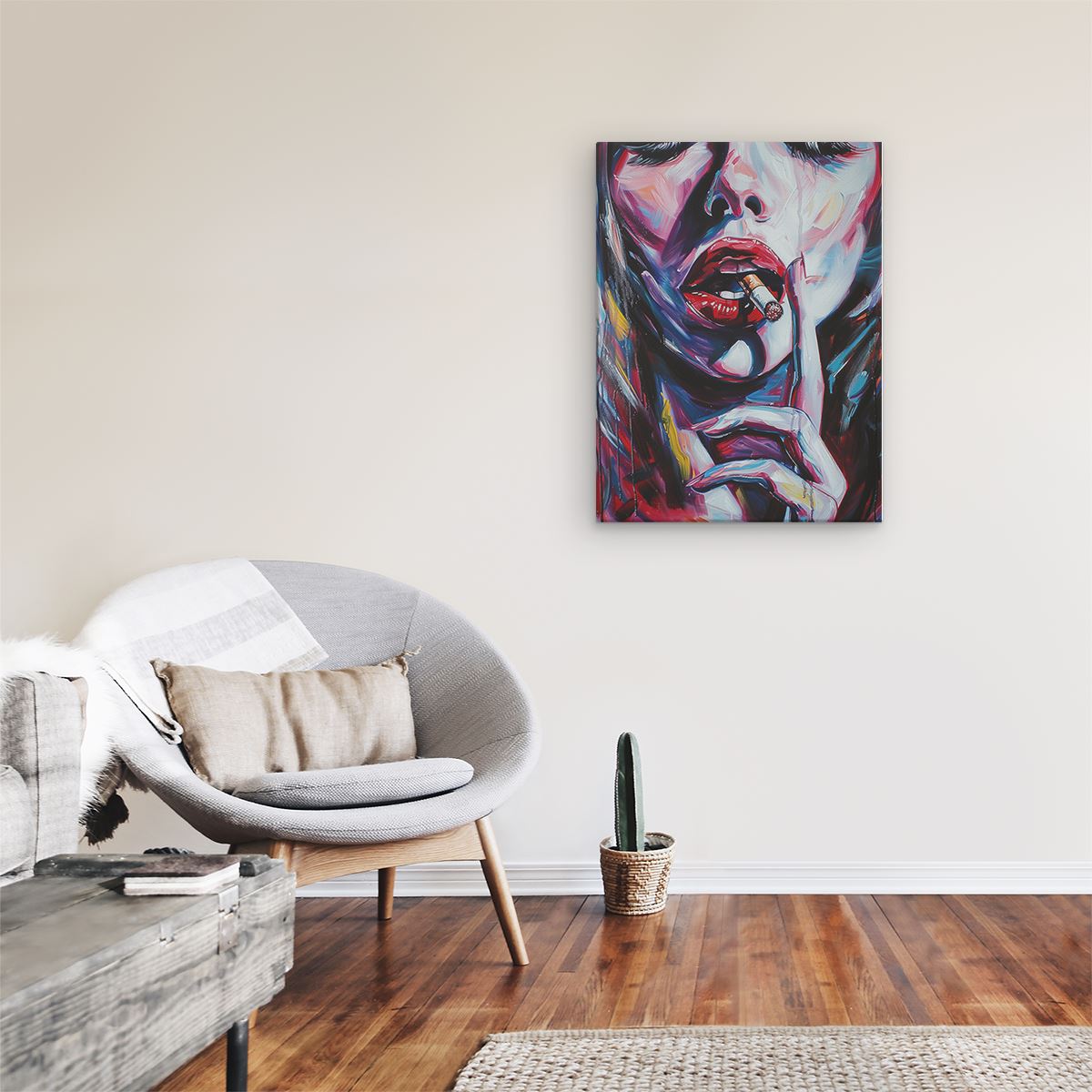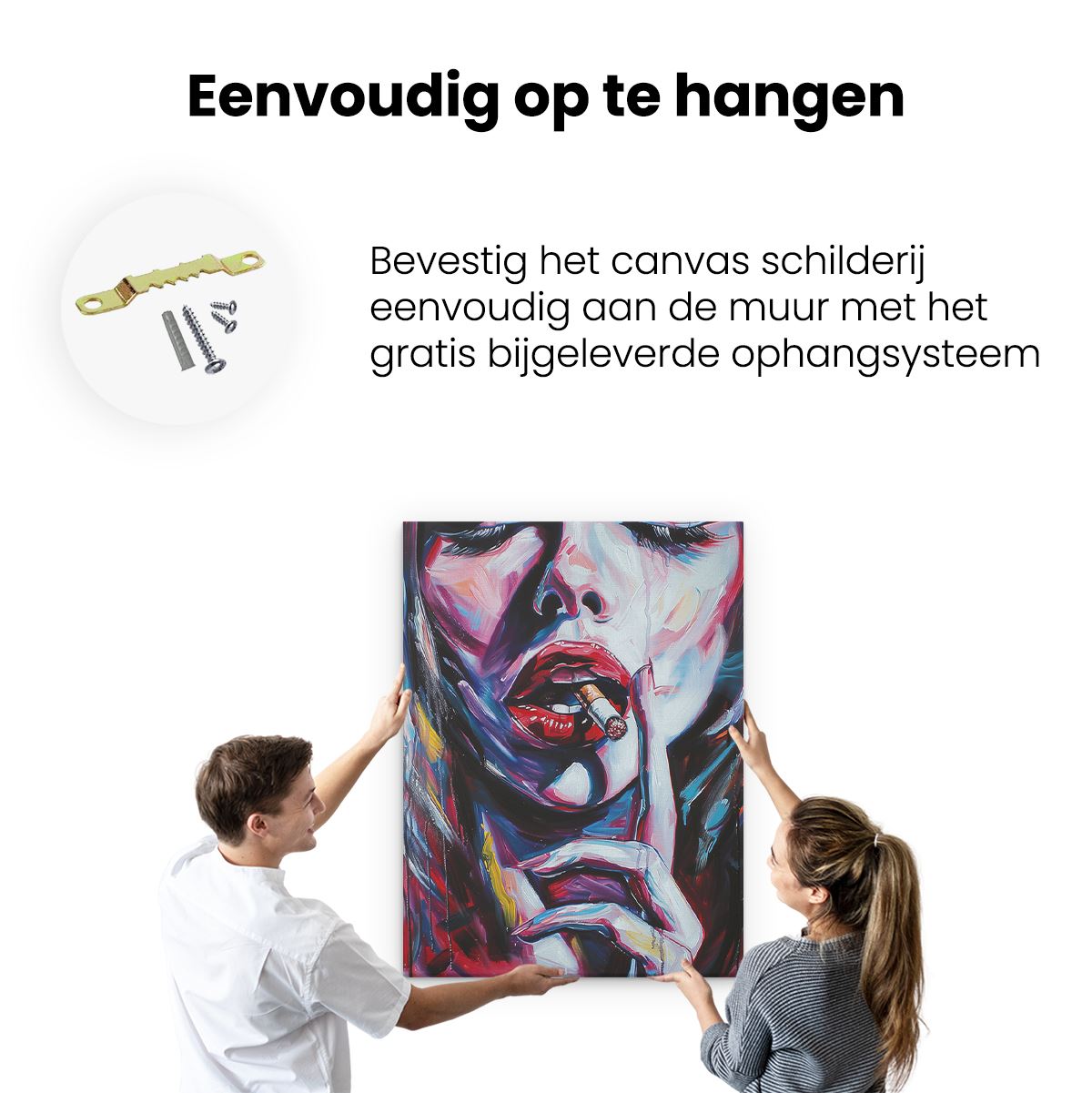 Schilderij Kunstwerk van een Vrouw die een Sigaret Rookt