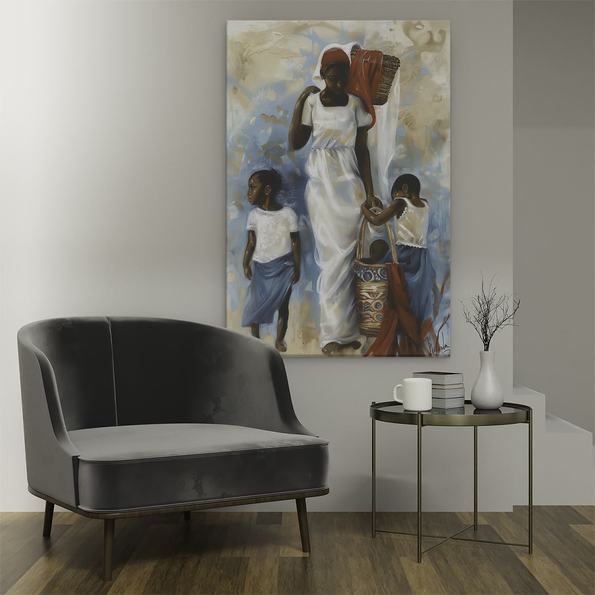 Schilderij Kunstwerk van een Vrouw en haar Kinderen