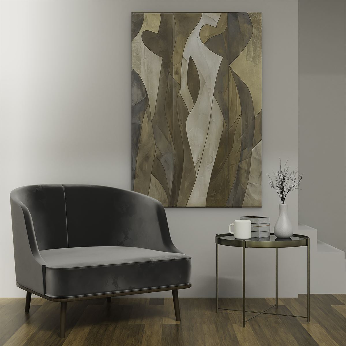 Schilderij Kunstwerk van een Vrouw in Bruin en Beige