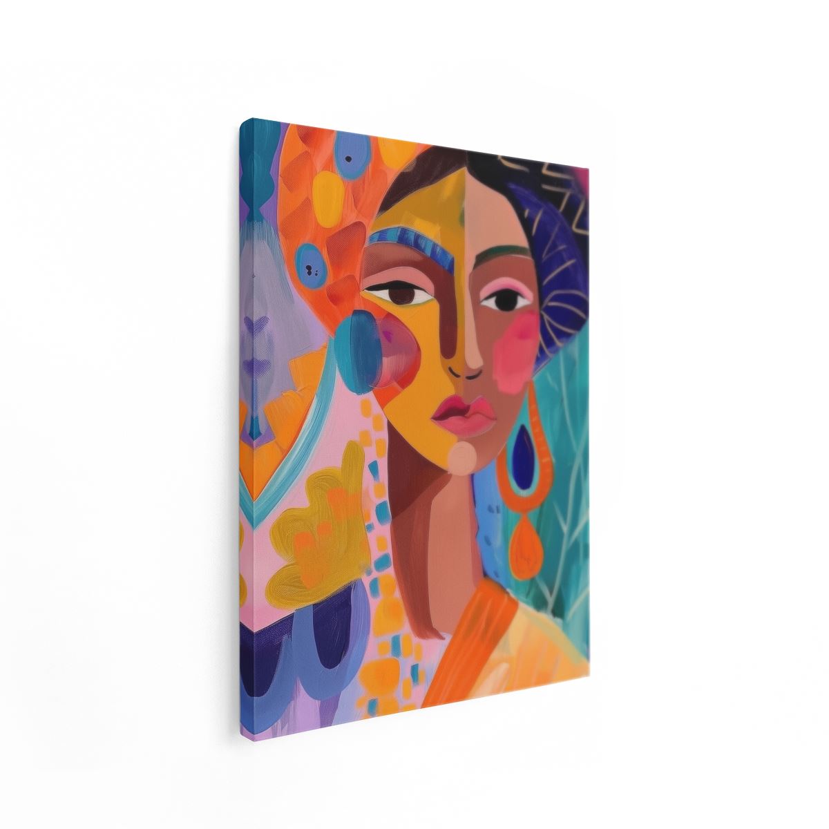 Schilderij Kunstwerk van een Vrouw in een Kleurrijke Tulband