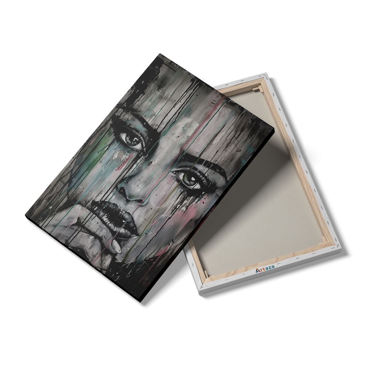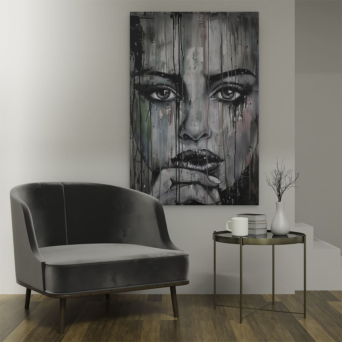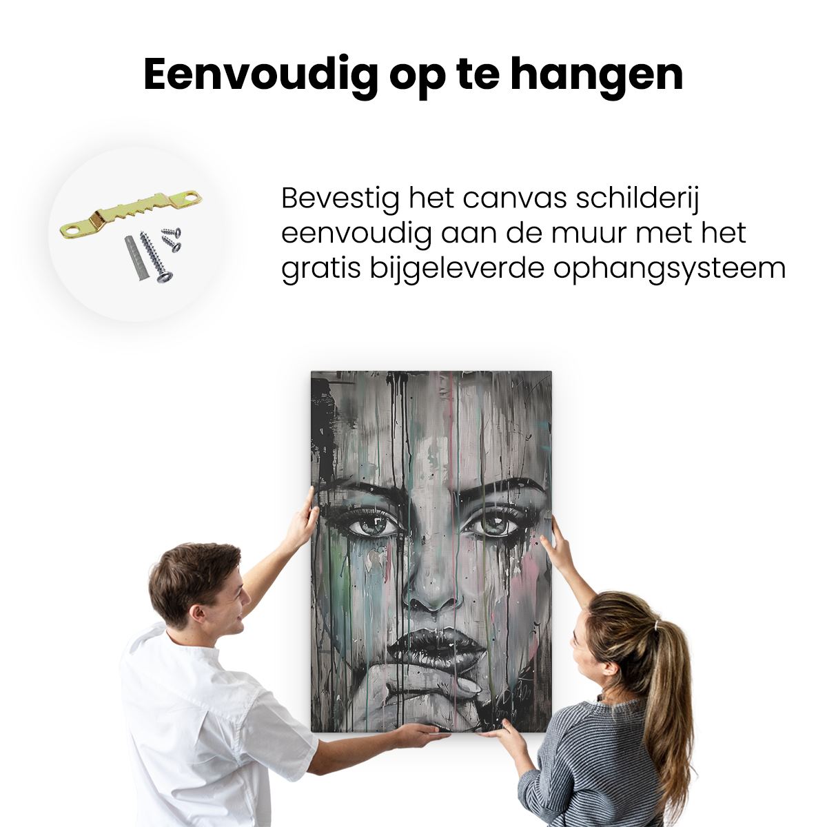 Schilderij Kunstwerk van een Vrouw met Druipende Verf op haar Gezicht