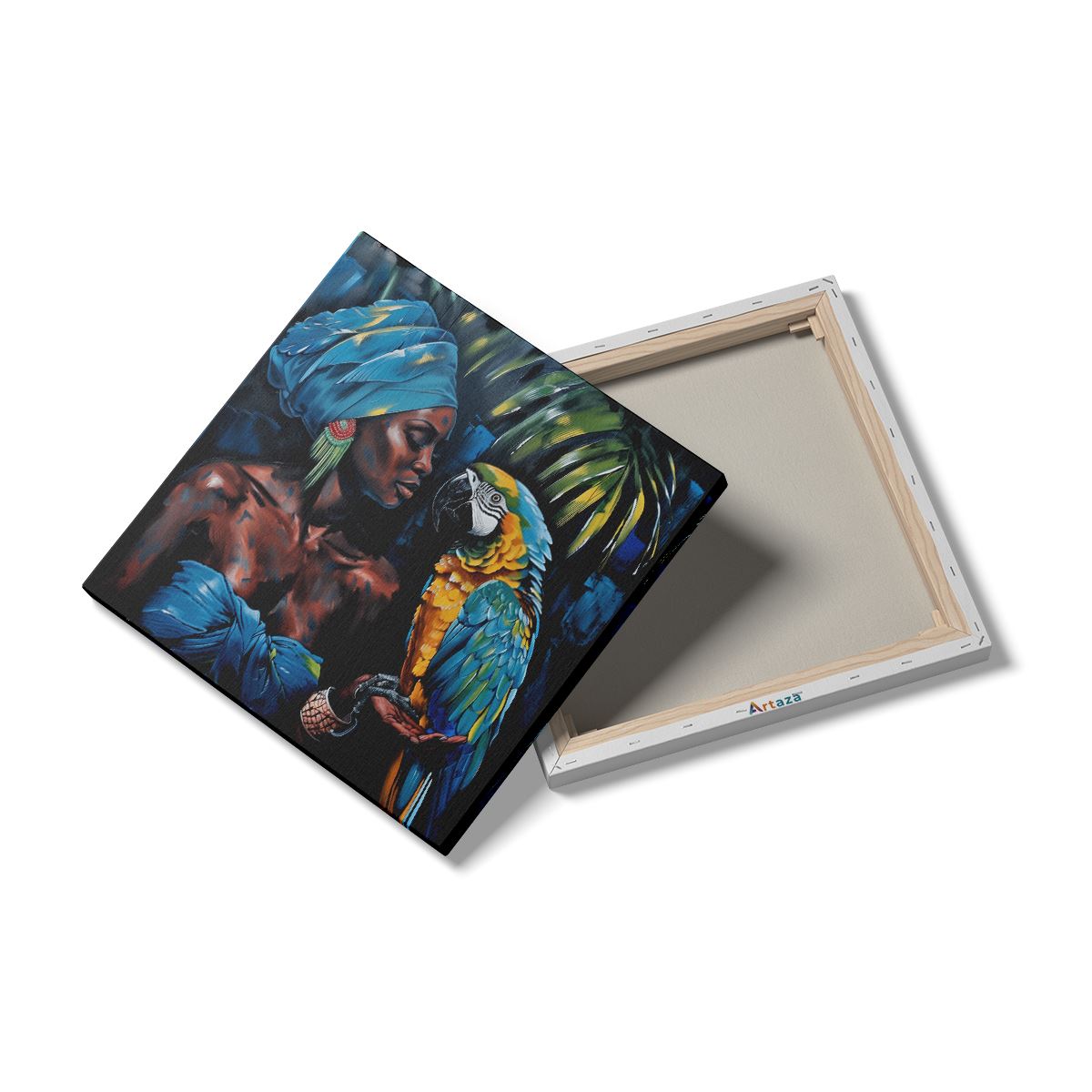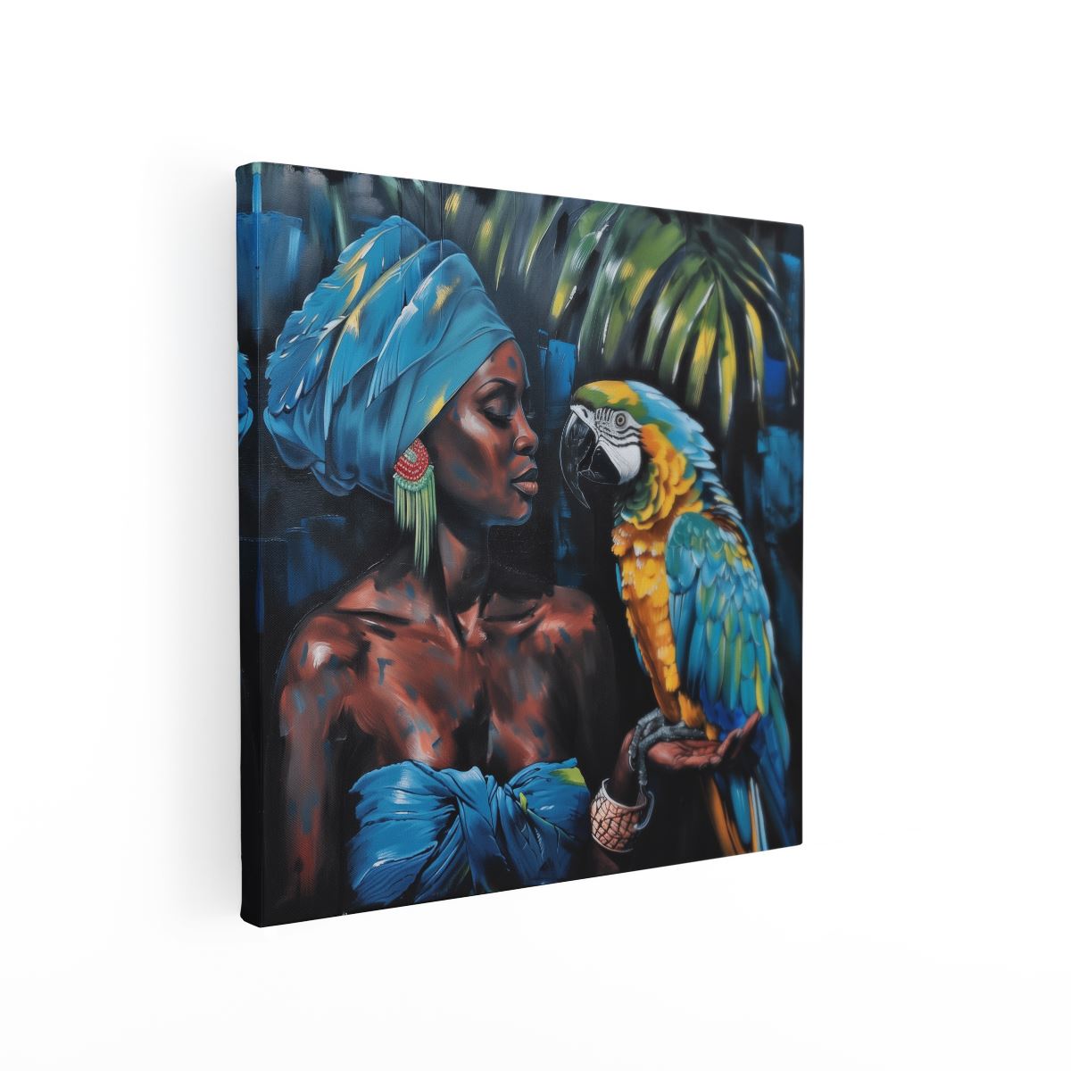 Schilderij Kunstwerk van een Vrouw met een Papegaai
