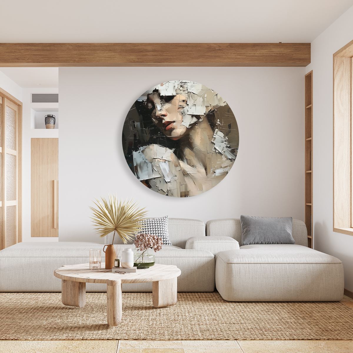 Wandcirkel Kunstwerk van een Vrouw met haar Gezicht Bedekt met Papier