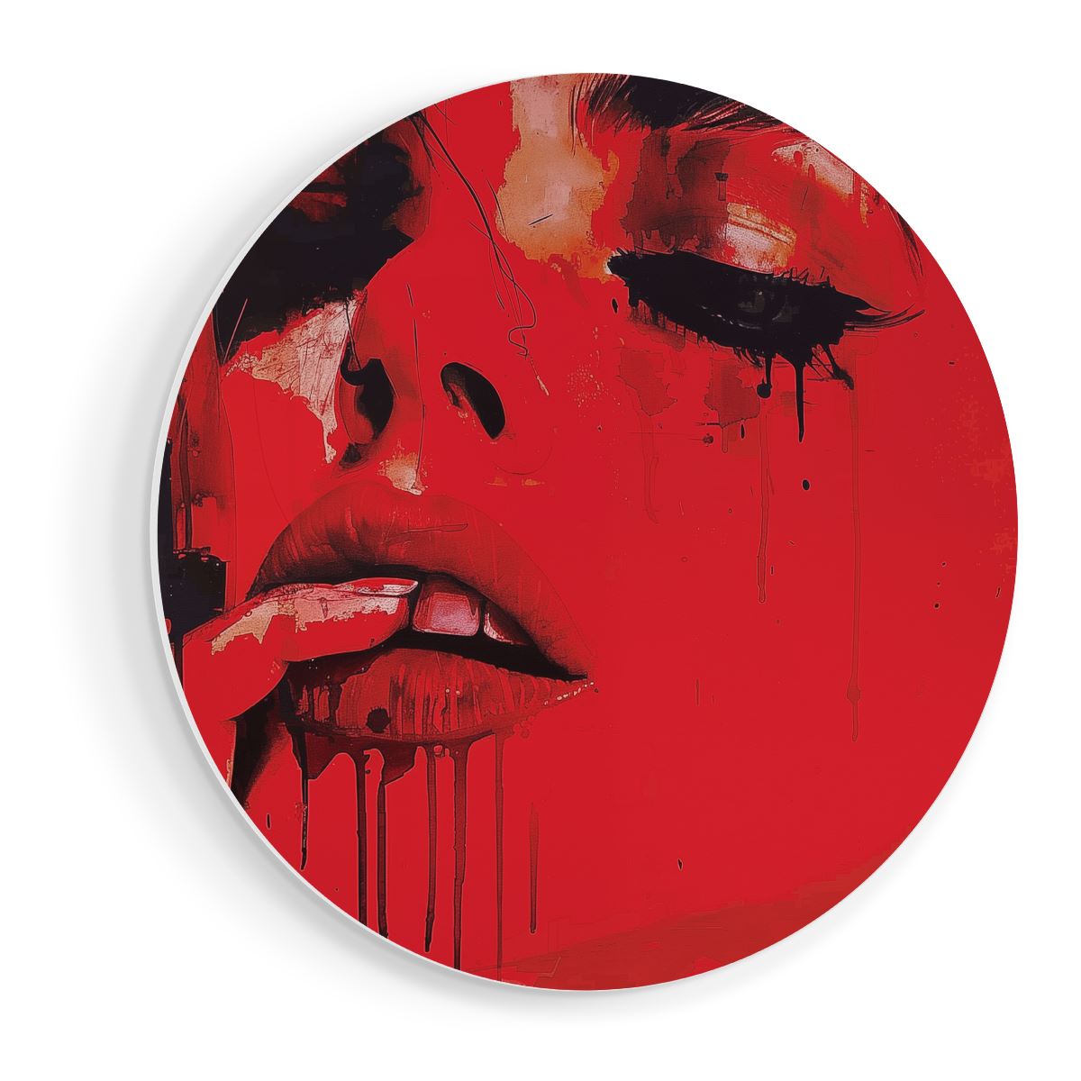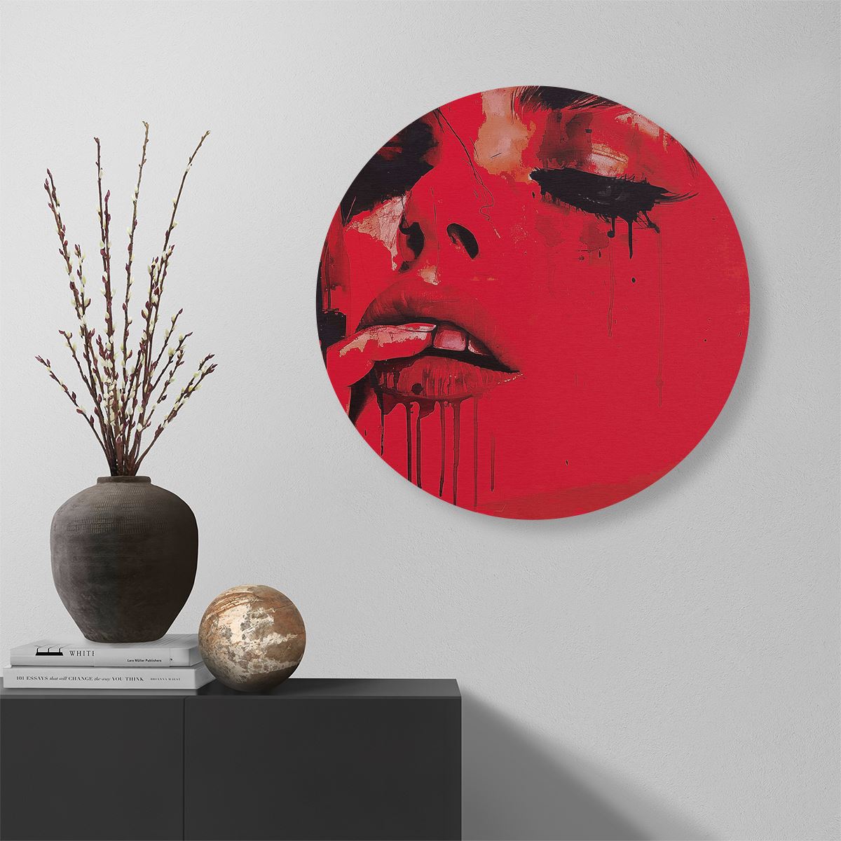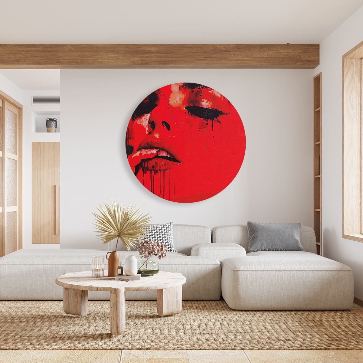 Wandcirkel Kunstwerk van een Vrouw met Rode Verf op haar Gezicht