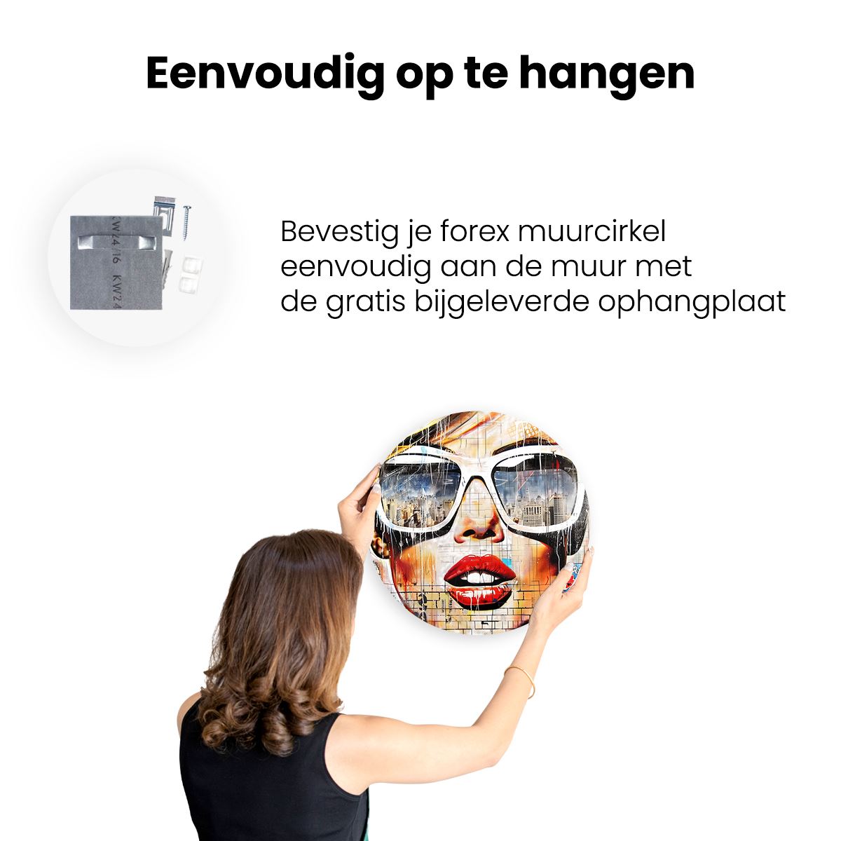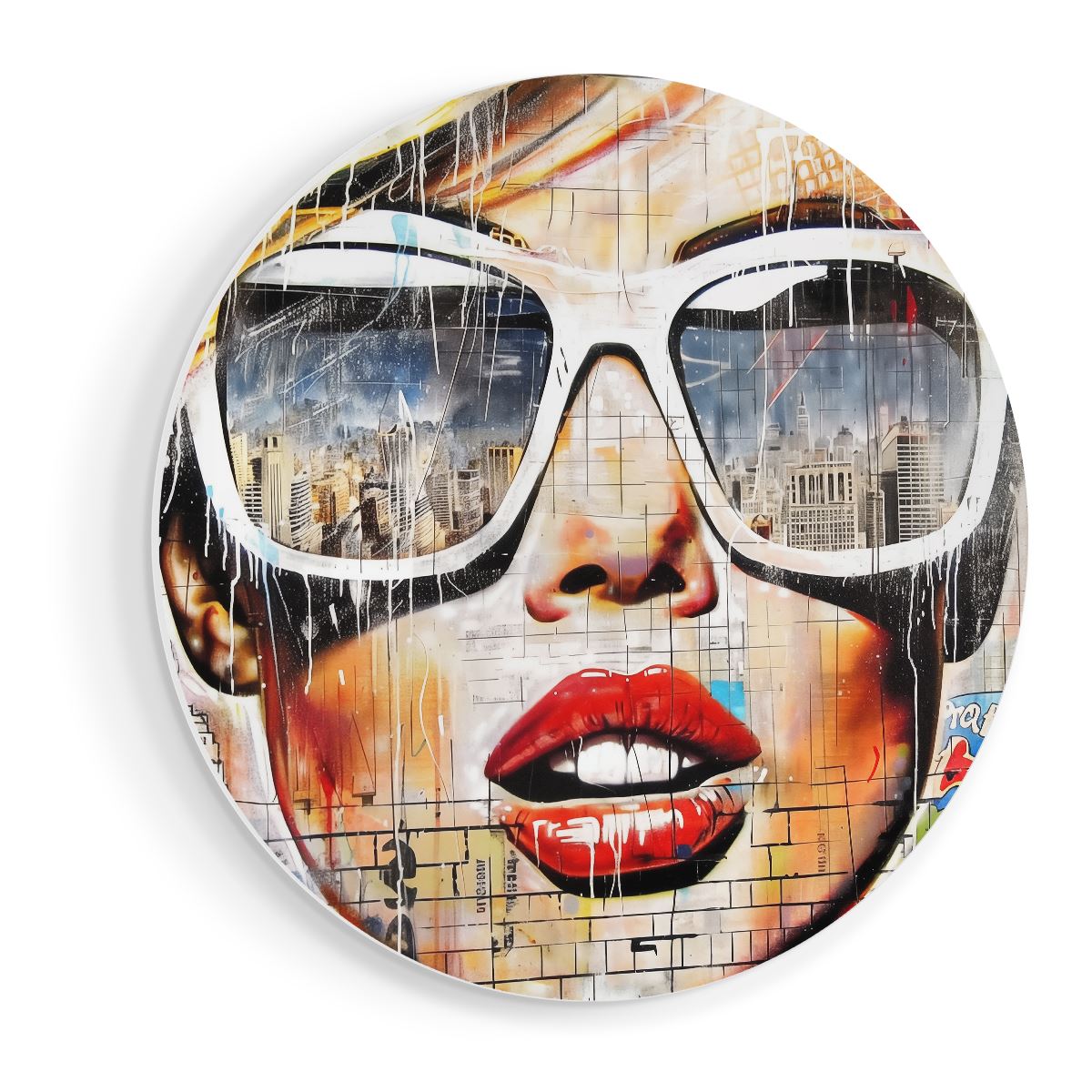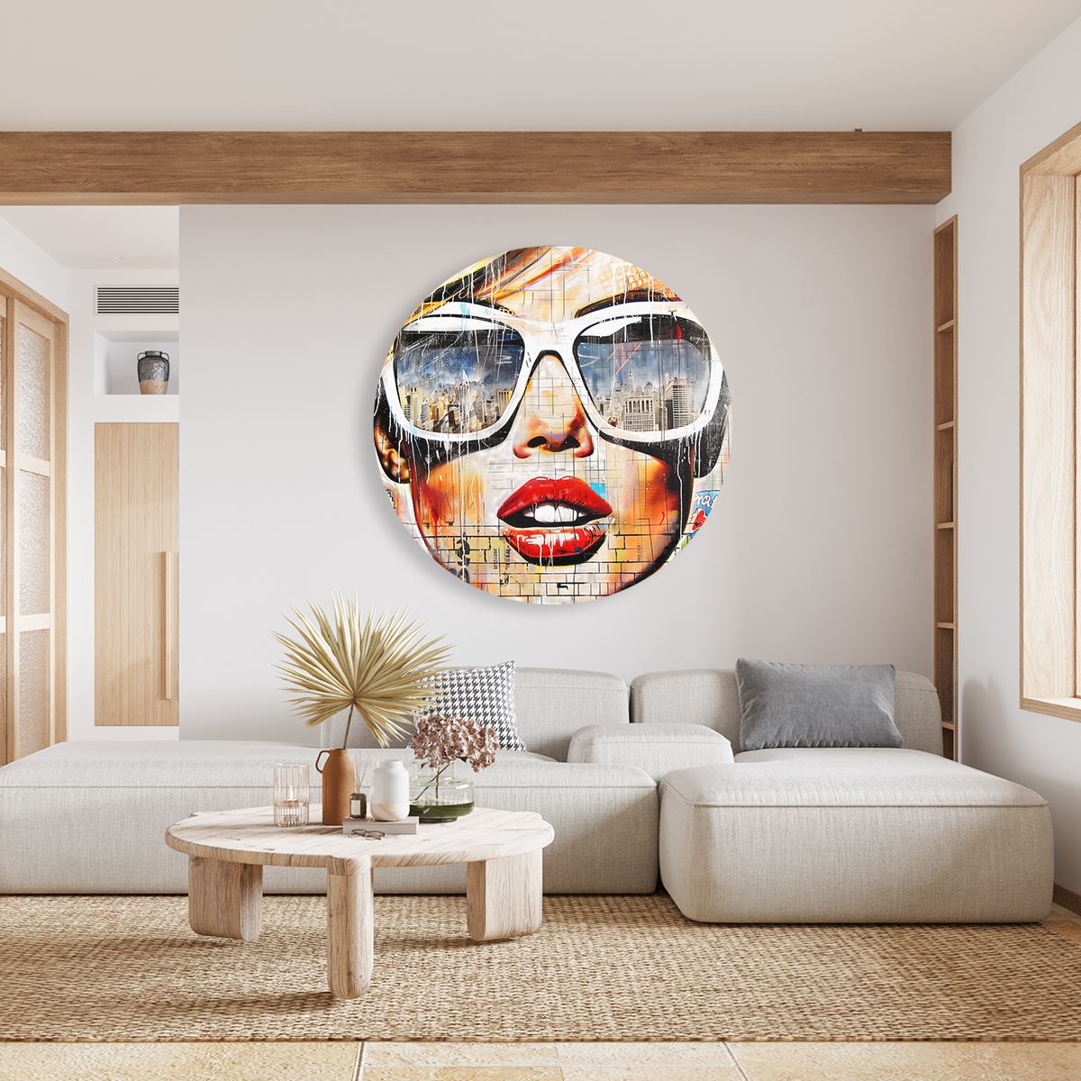 Wandcirkel Kunstwerk van een Vrouw met Zonnebril