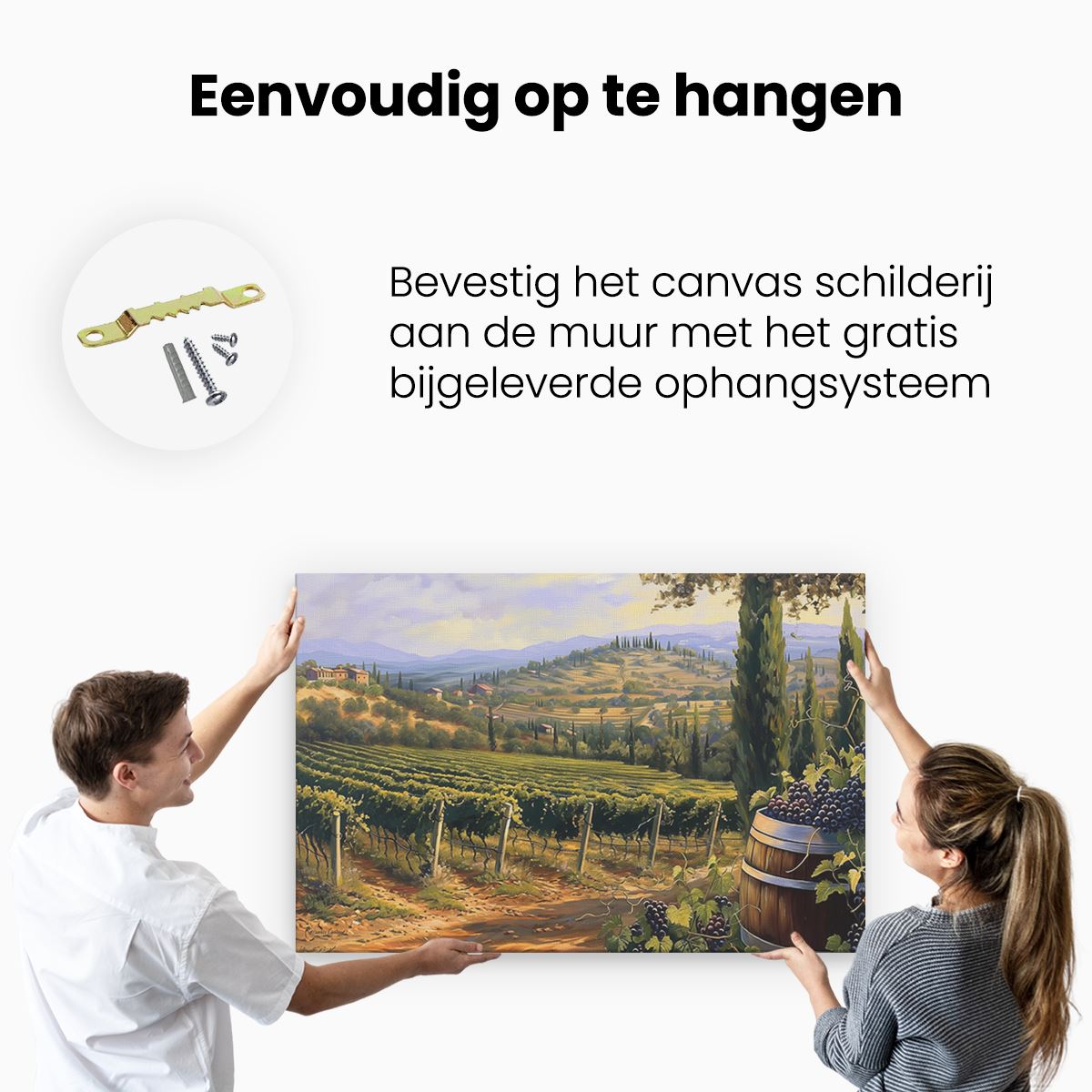 Bij aankoop ontvang je een meegeleverd ophangsysteem, zodat je op een simpele en snelle wijze het schilderij boven de bank of bed kan monteren.