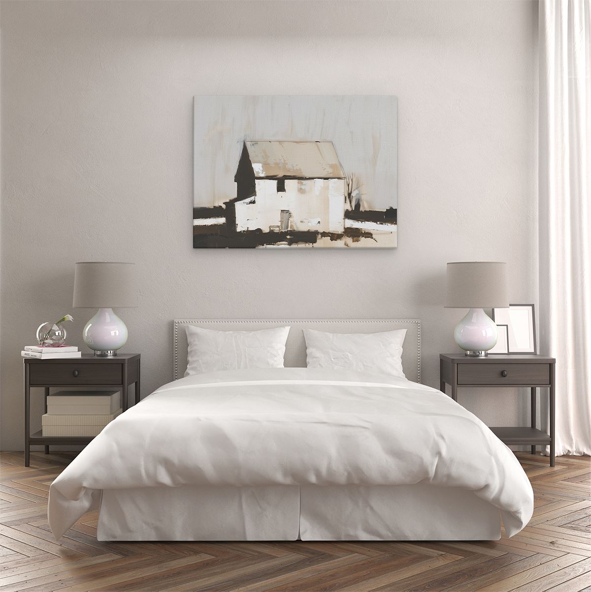Schilderij Kunstwerk van een Wit Huis Midden in een Veld