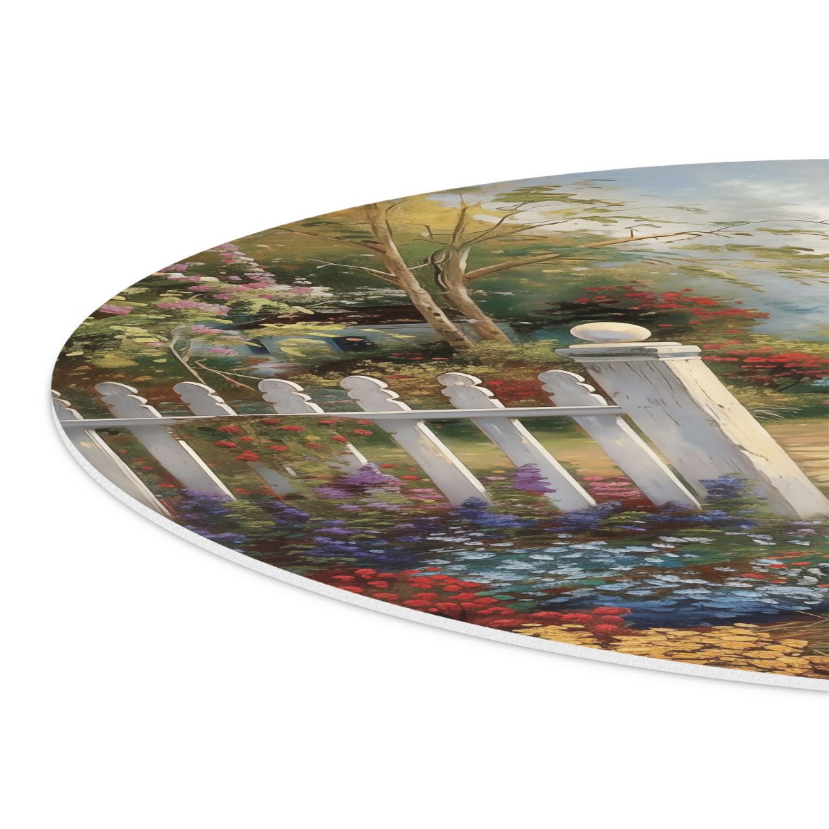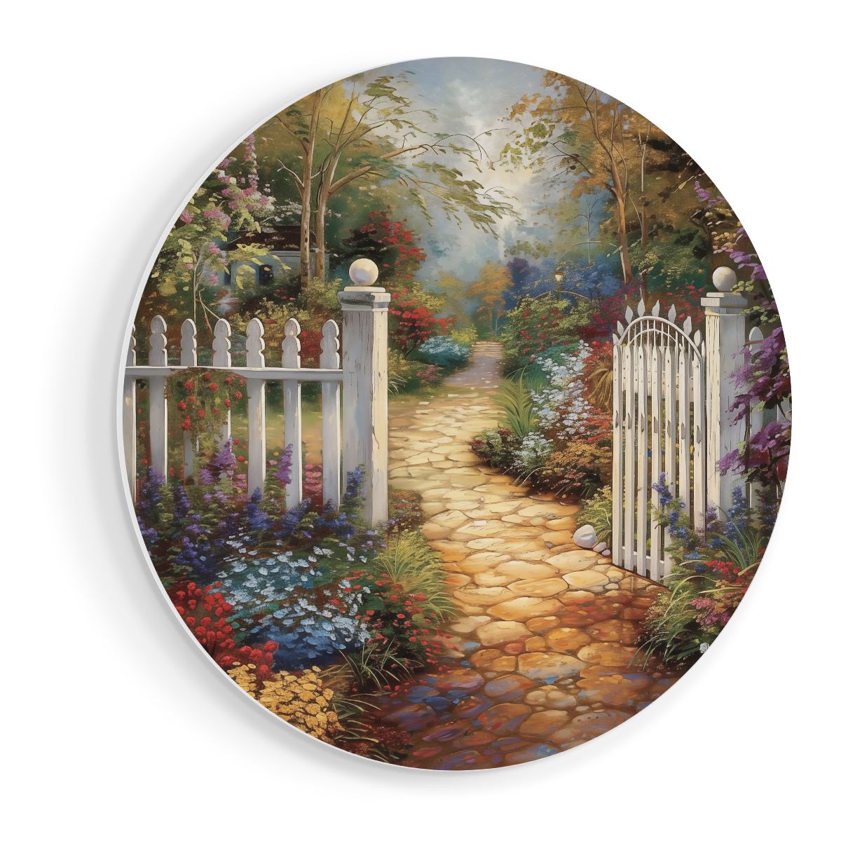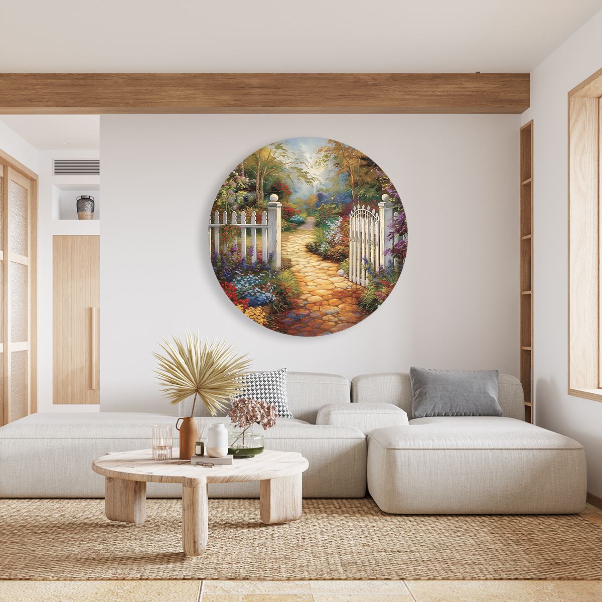 Wandcirkel Kunstwerk van een Witte Poort in een Tuin