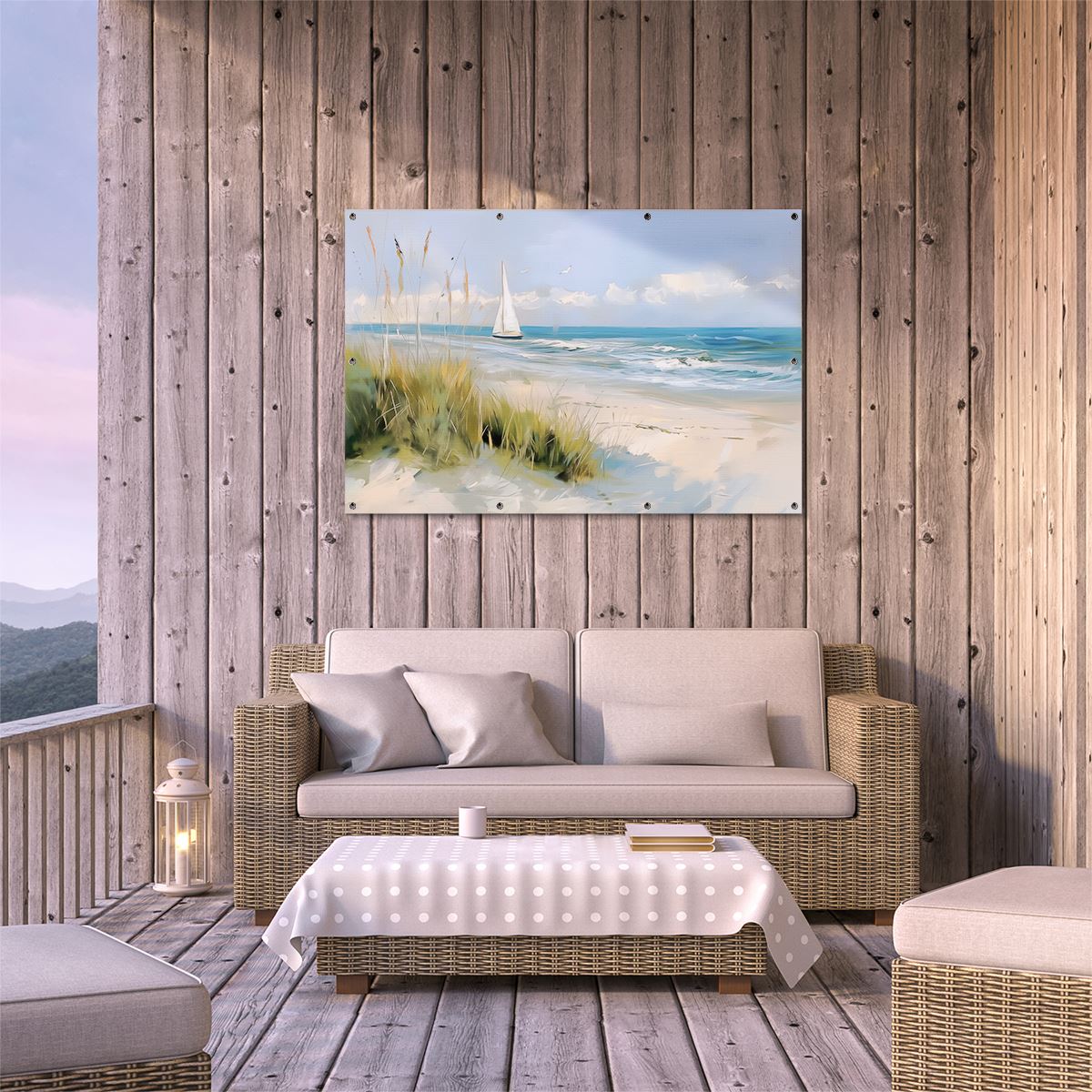 Tuinposter Kunstwerk van een Zeilboot op het Strand