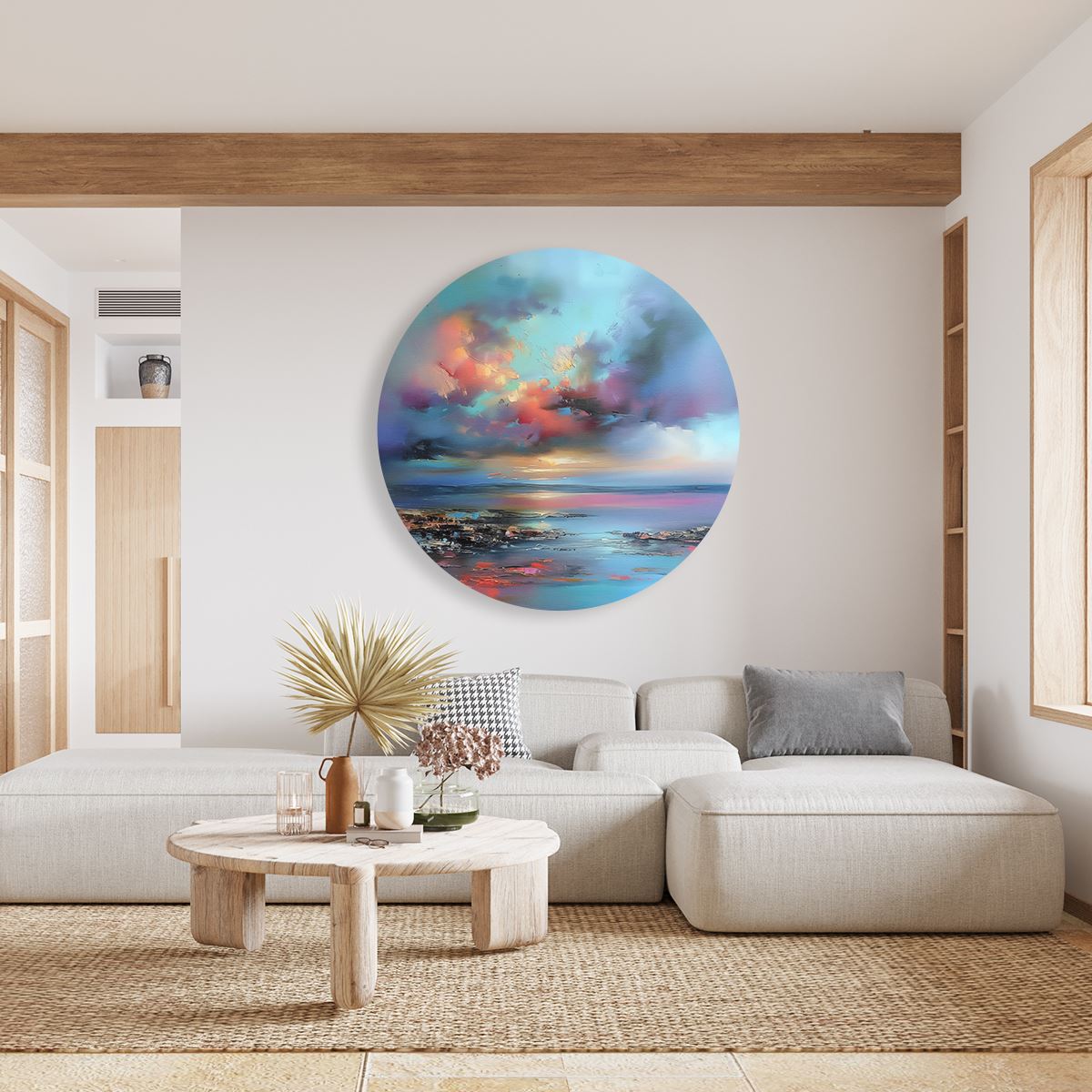 Wandcirkel Kunstwerk van een Zonsondergang boven de Oceaan
